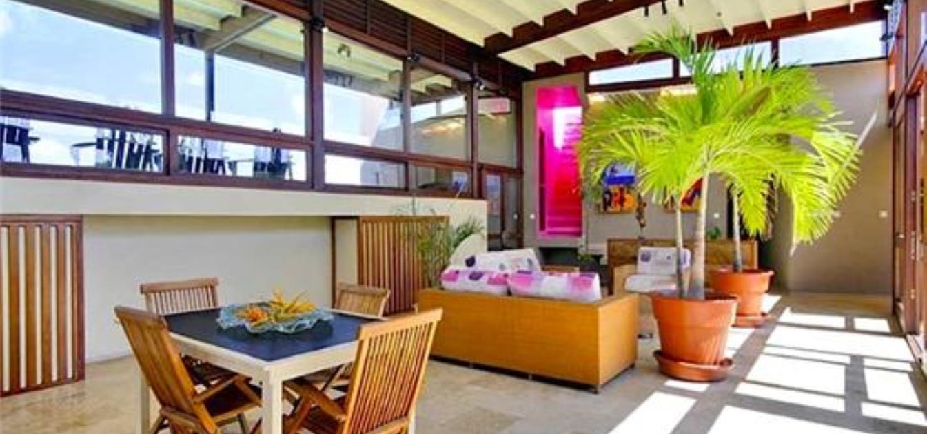 This stunning split level waterfront villa has 5 bedrooms and 5 bathrooms including a guest cottage nearby.The waterfront house is being sold fully furnished and is located at the desirable area on the south east coast of the island called of Fort Jeudy.