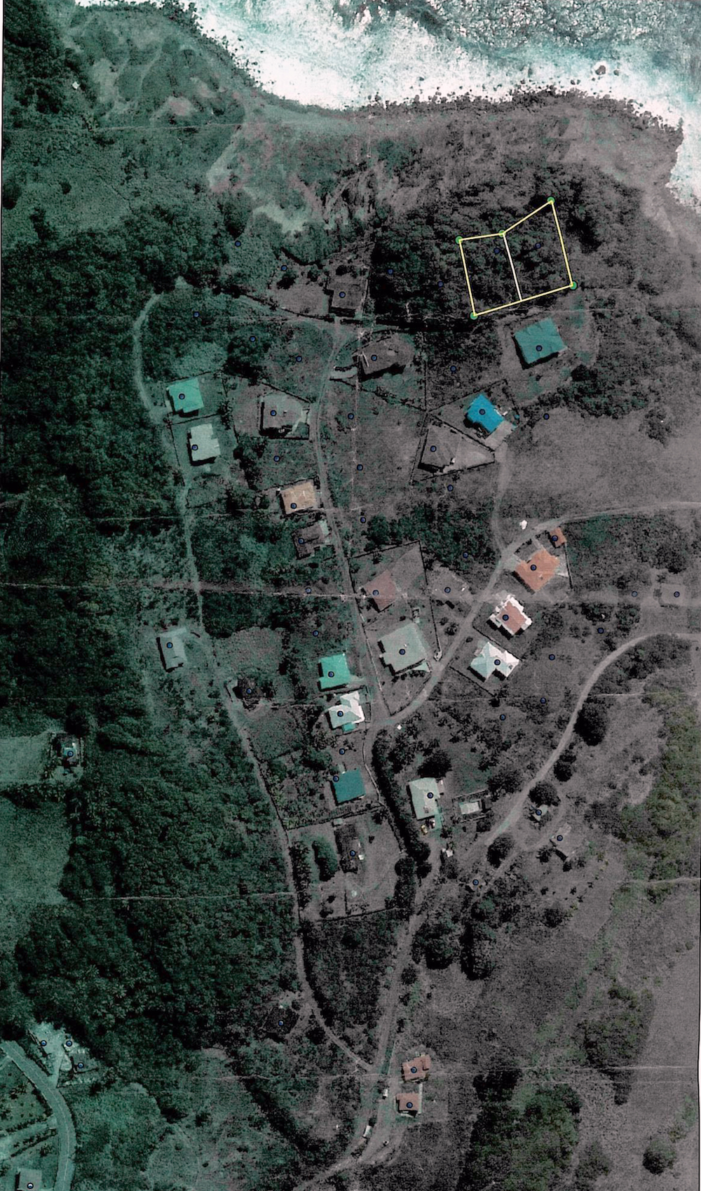 1. Take the Windward Highway to Argyle New International Airport. 2. Take road across runway towards the ocean. (as if en route to Waves Villa / Youromei; two properties we have for sale in the area - which we are also happy to show you to demonstrate the feel of houses in the local area). 3. At junction just before reaching Waves take the upper road instead of the lower road. 4. Continue to end taking right bend down hill towards the sea 5. Land parcels are sited above the road / a cream house with a green roof below the road is the centre line of the plots above and Waves Villa can be seen more or less opposite.