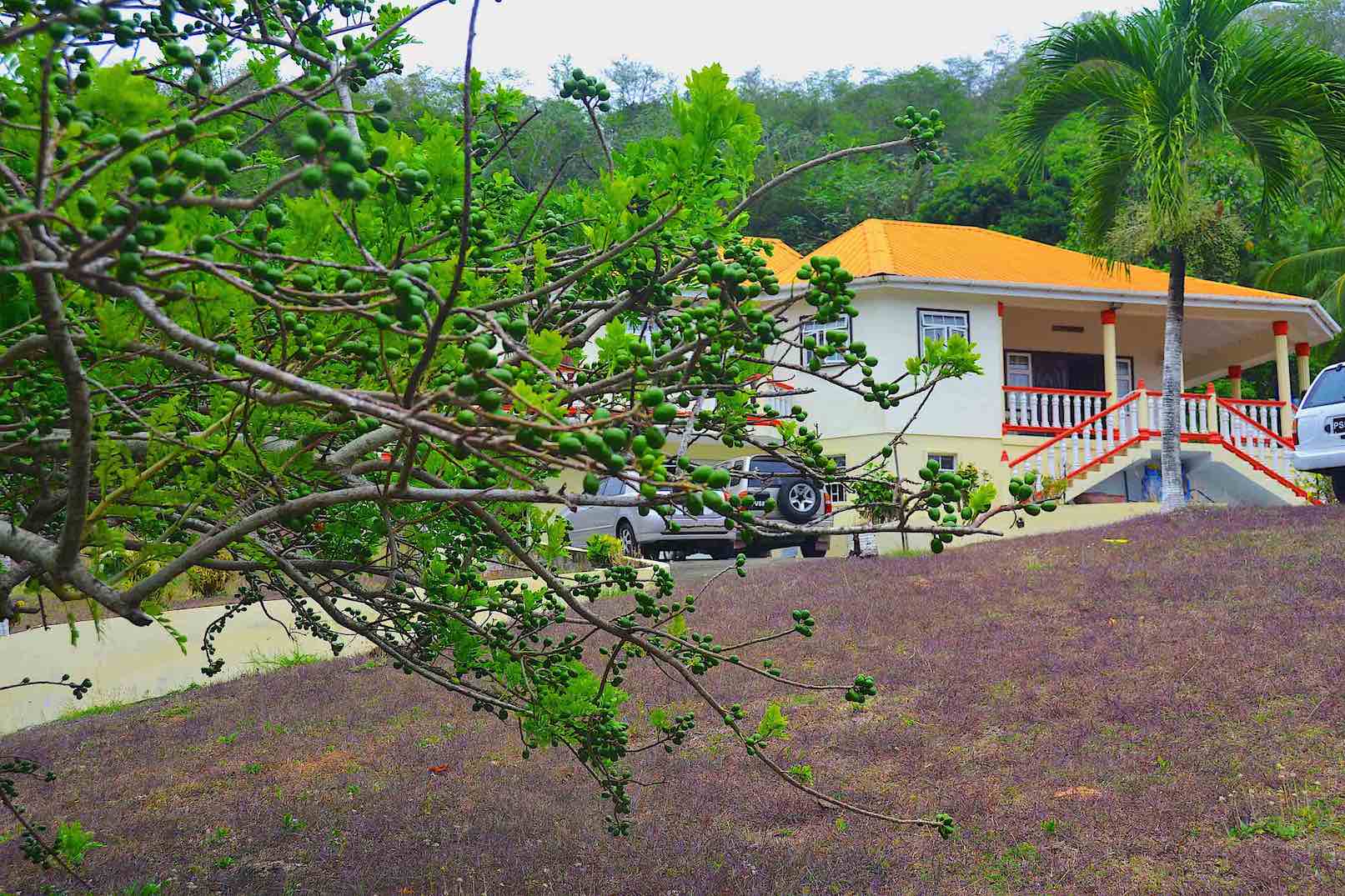8 acres of land, with mature vegetation, a range of species, including mango, plum, banana, avocado, breadfruit, coconut.