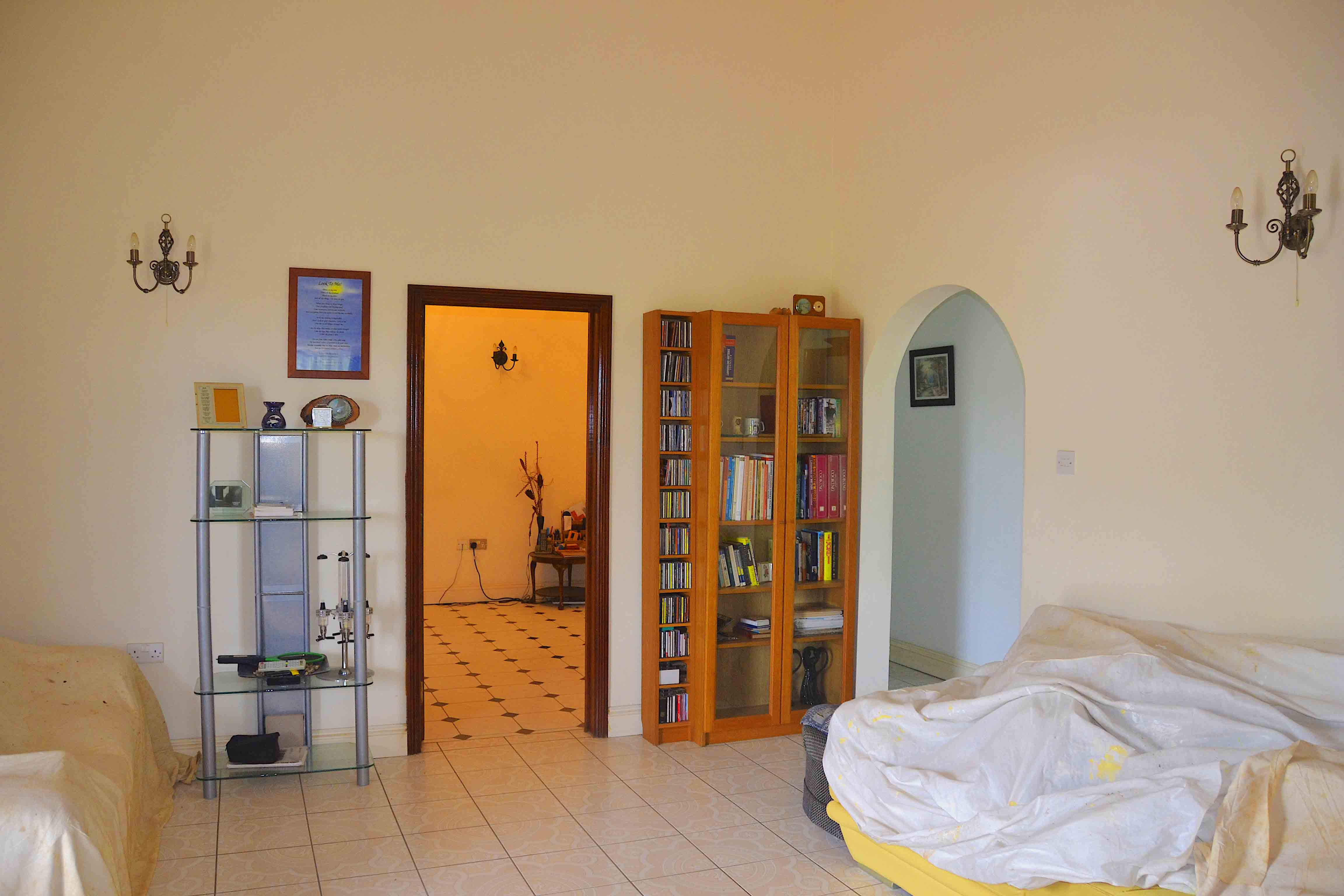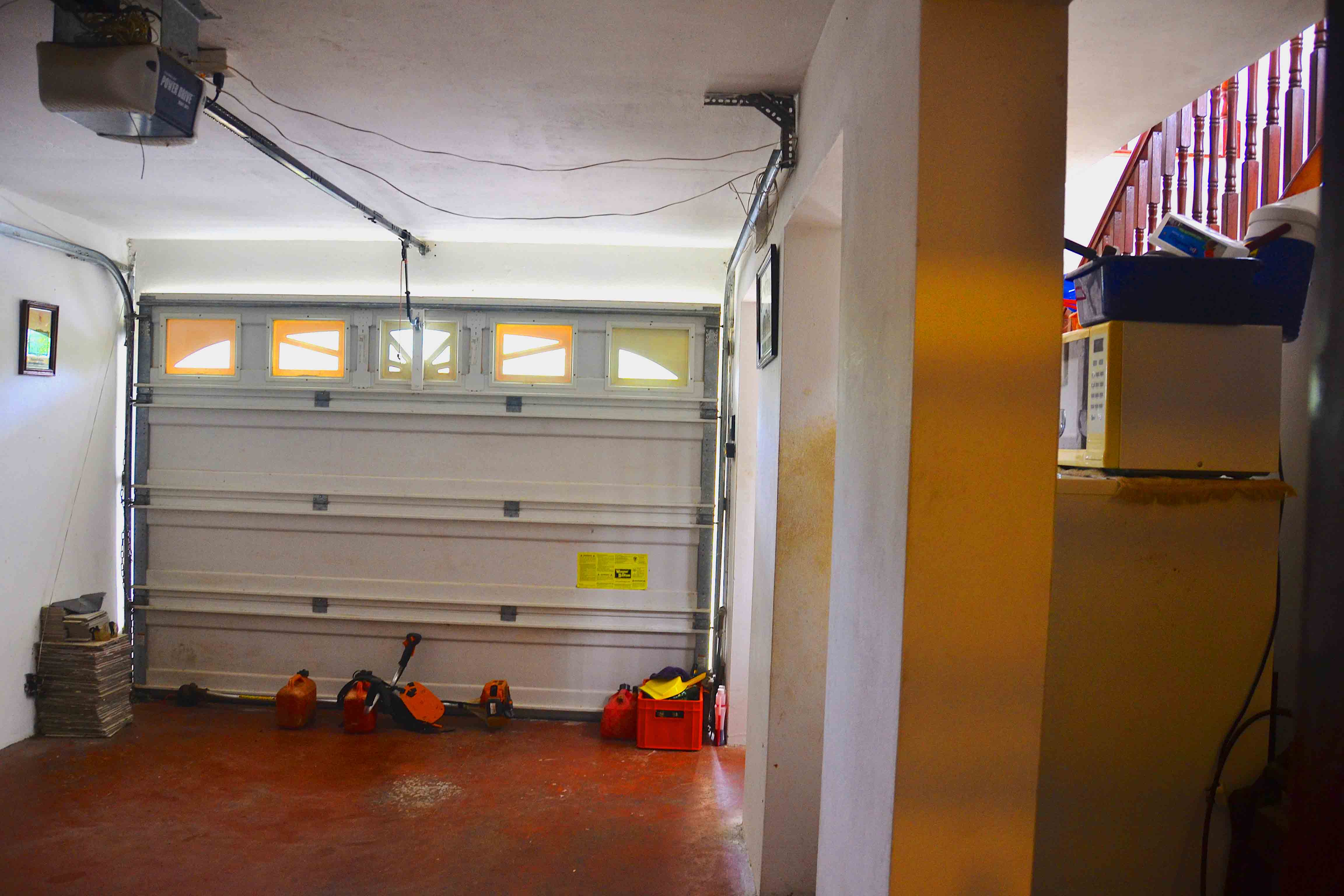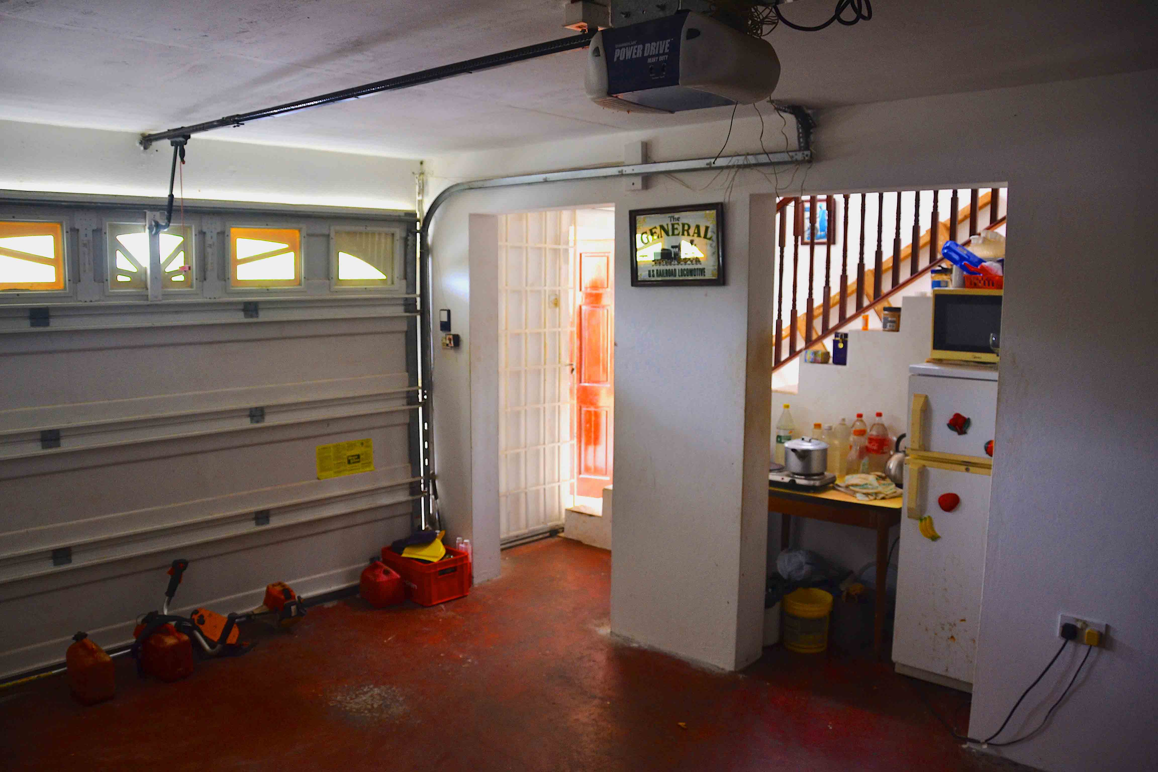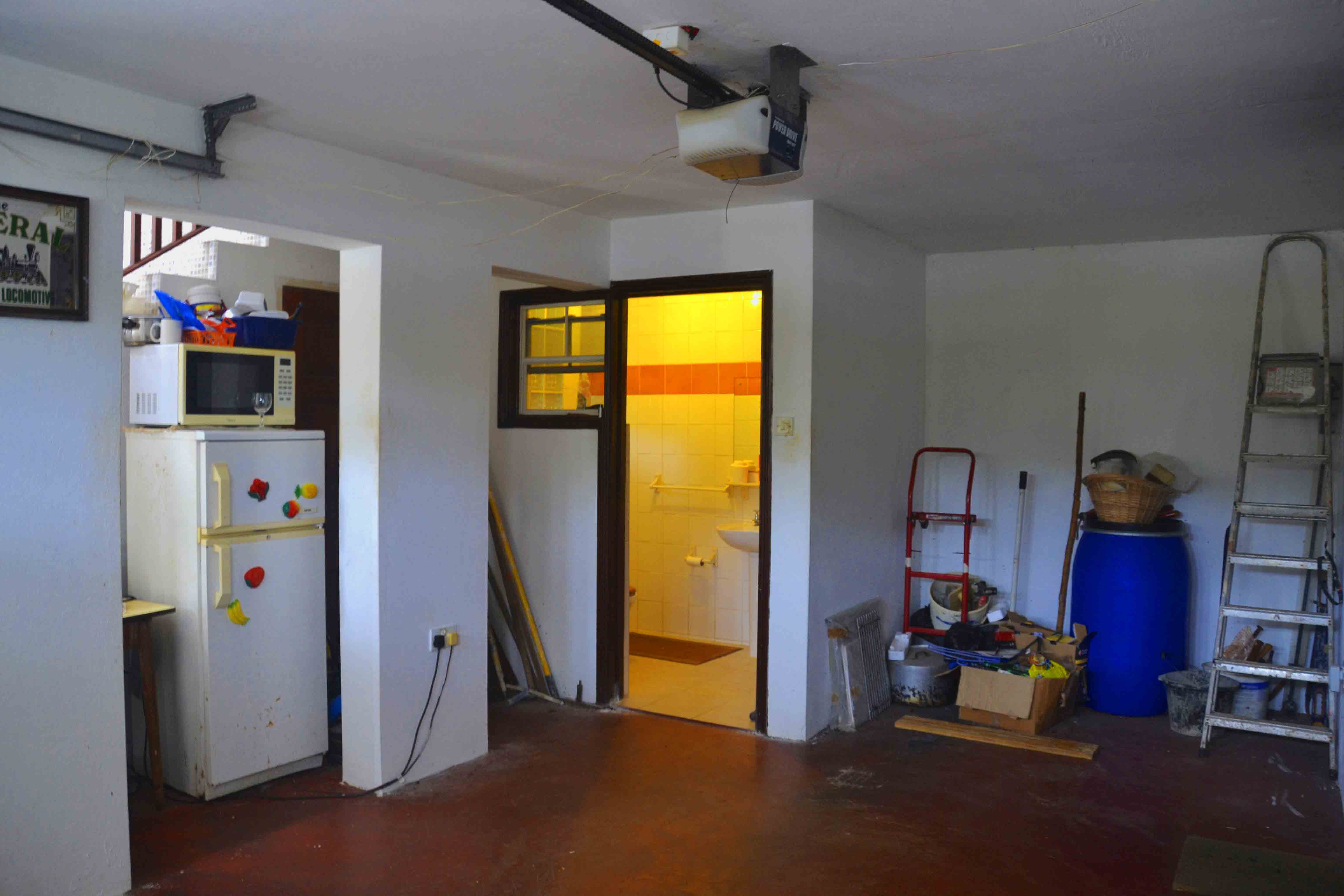 Currently accommodation for live-in Gardener – garage with shower / bathroom, makeshift kitchenette, bedroom to the side with access through internal door.