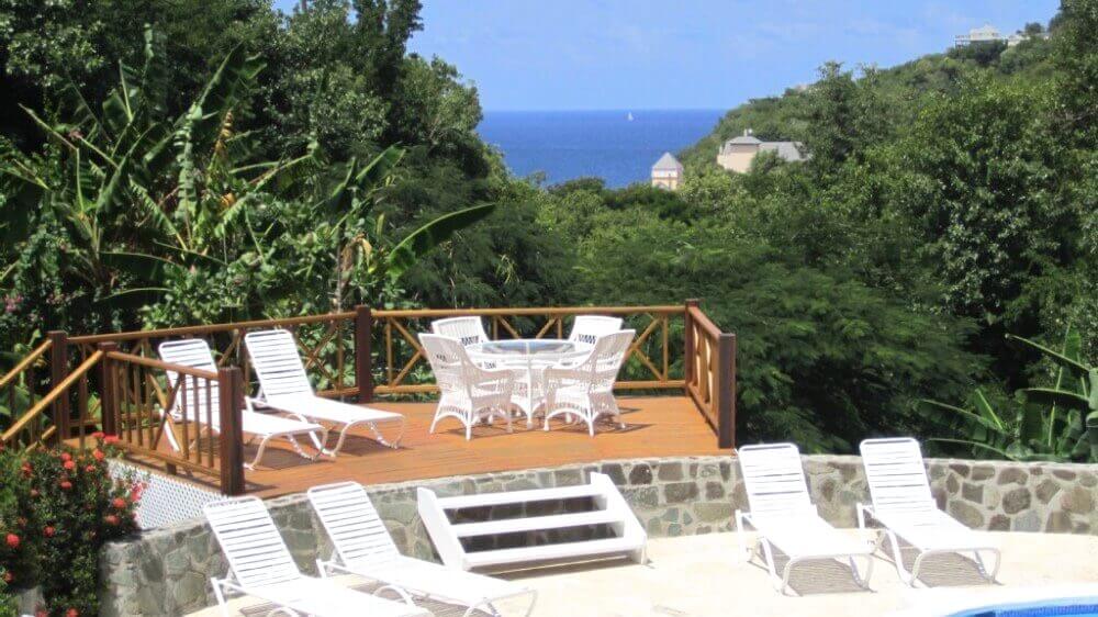 Beau Rivage Villa located in the peaceful residential area of Cap Estate, in a gently sloping garden overlooking the Caribbean Sea, within walking distance of the beach (a short 400 yards, 5 minute walk to Anse Du Cap beach). Rodney Bay with its bars, restaurants and shops is about 7 minutes away by car.