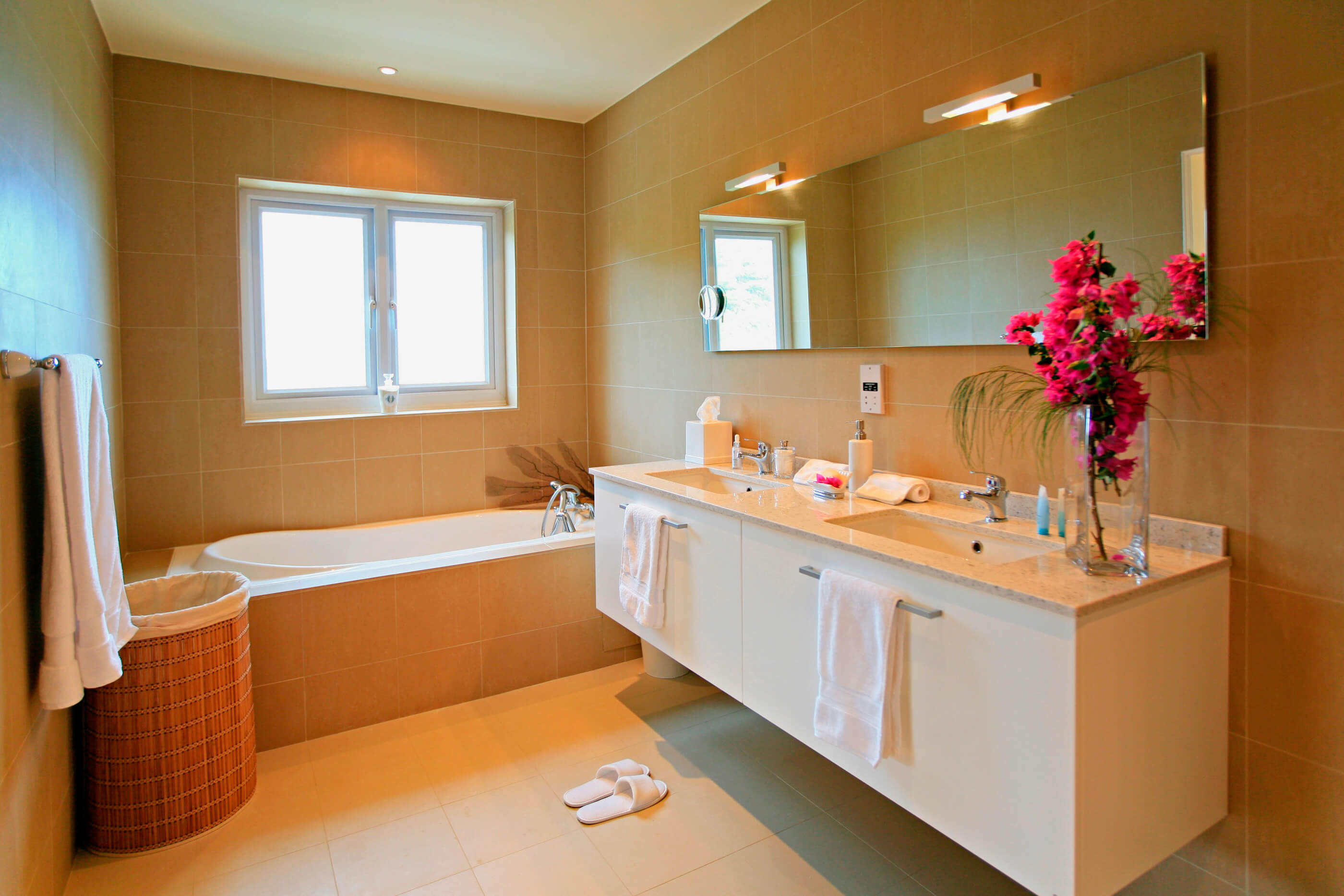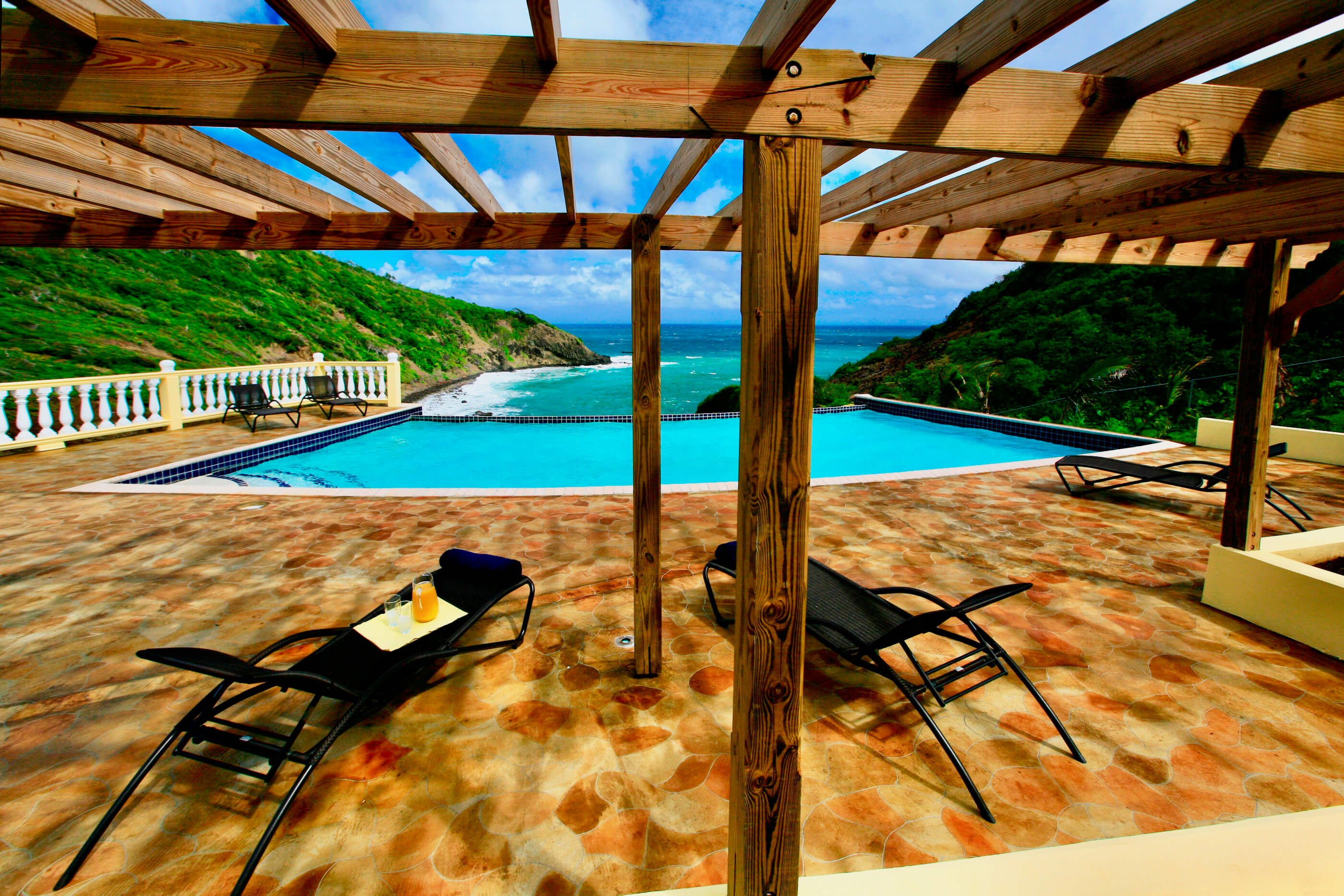 Two double bedrooms, both with Bamboo floors, A/C and overhead fans and large ensuite shower rooms, with shower, twin w.b’s and w.c. They both have a balcony/Juliette overlooking the pool towards Martinique