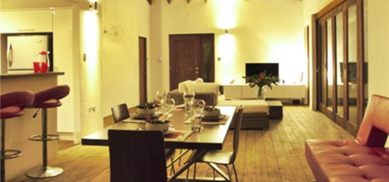 Designed in an elegant, contemporary style, this property features 2 bedrooms and an open plan main area featuring kitchen with breakfast area, dining area, living area and a terrace overlooking Trou Rolland Bay which has a very quiet, small beach.