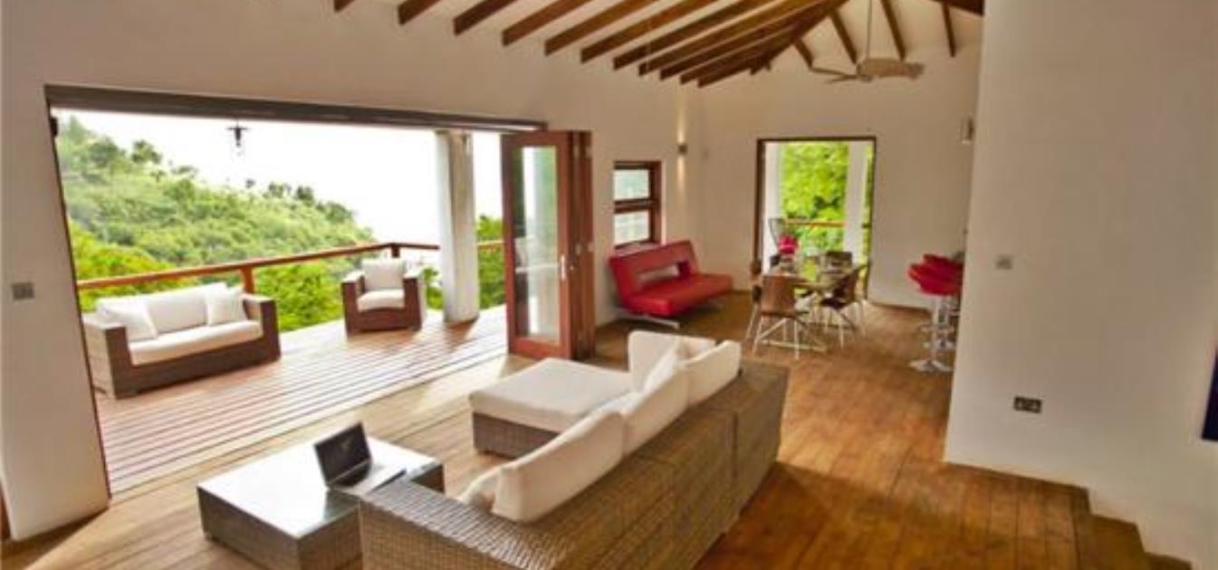 The villa overlooks Trou Rolland and enjoys stunning south westerly views over the Caribbean sea, ideal for watching the beautiful sunsets.