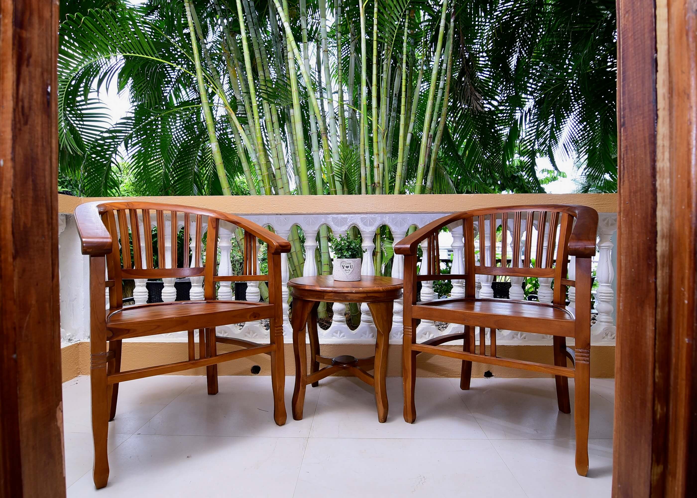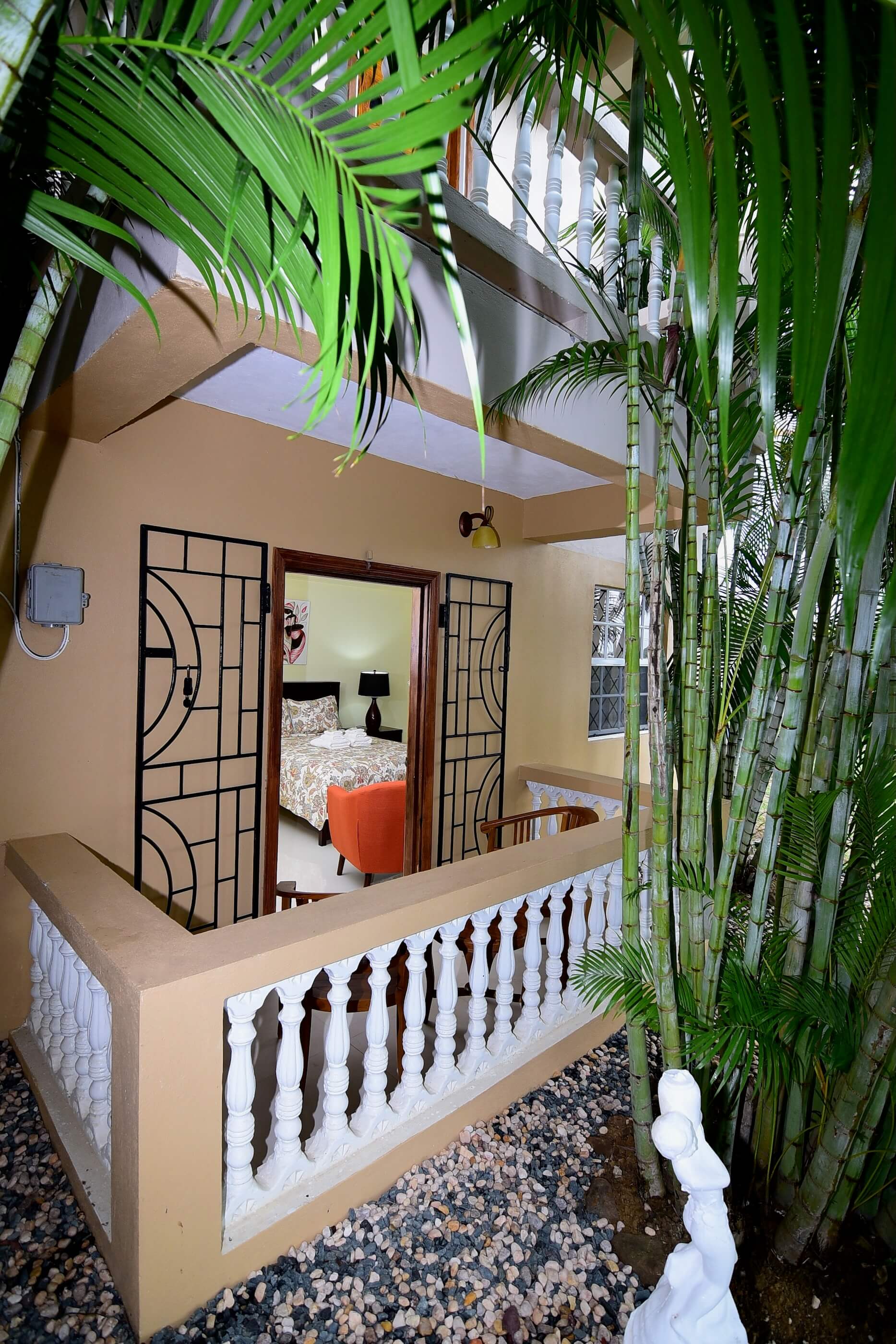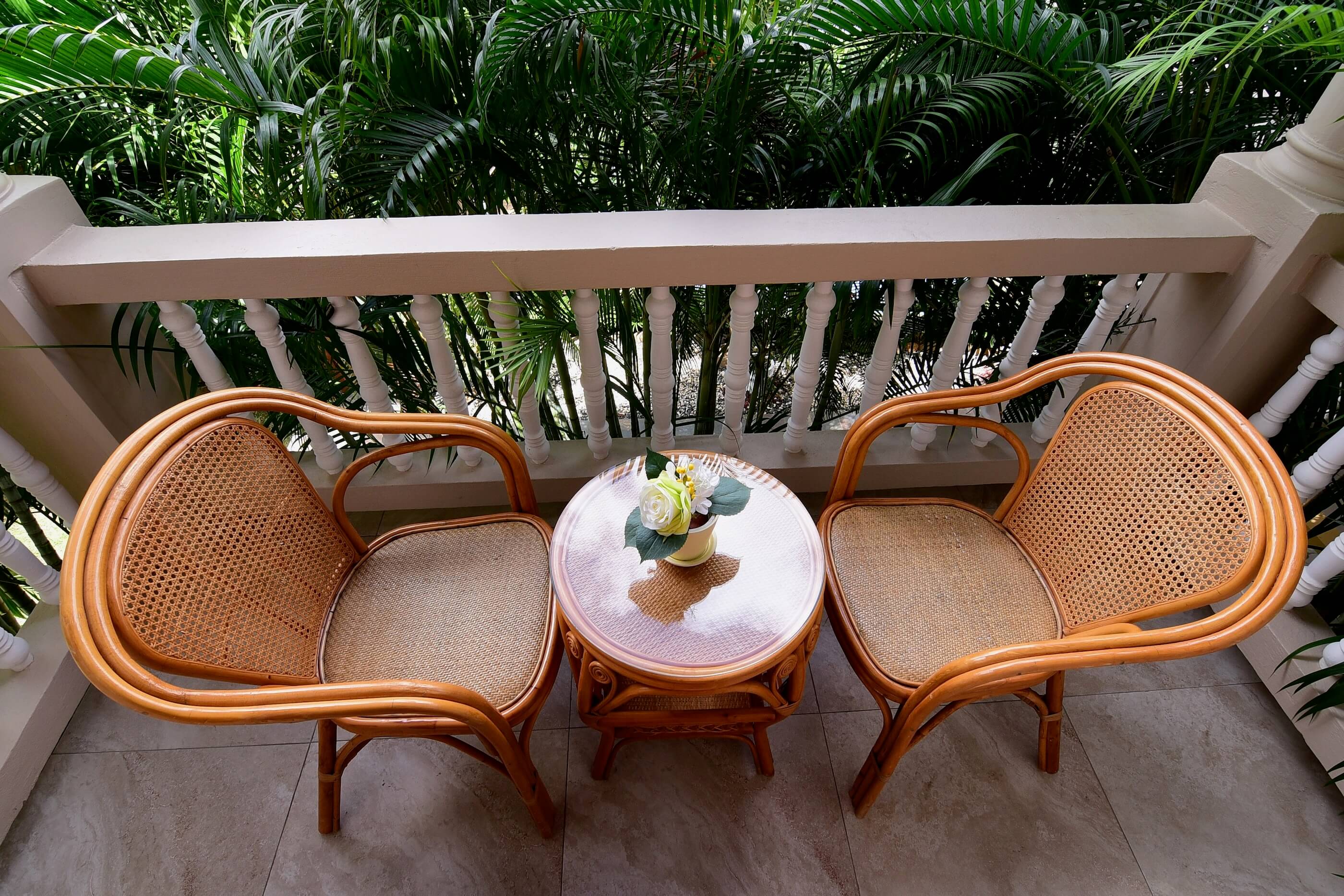 - Two air-conditioned bedrooms, one with a small balcony