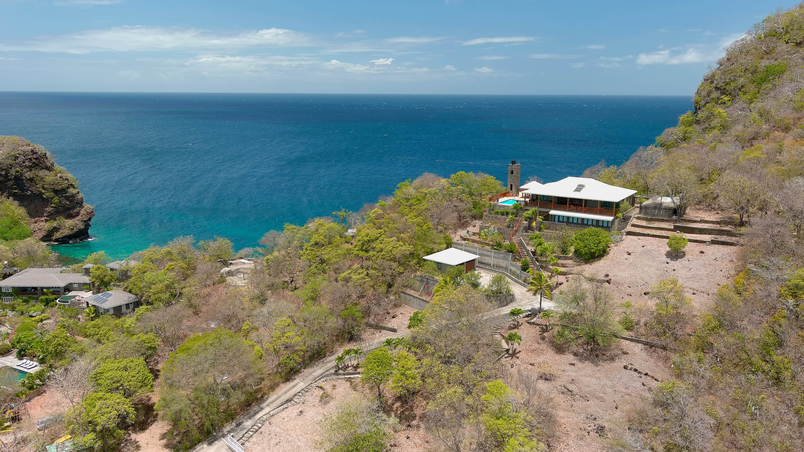 Adams Bay enjoys a super streatch of white sand beach a fresh breeze and superb views out to the offlying islands of Bequia and to Mustique beyond. Sharing the striking rocky Peninsular with Moonhole. This location is memorable and lies closer with easy access to the rest of the island and the airport.