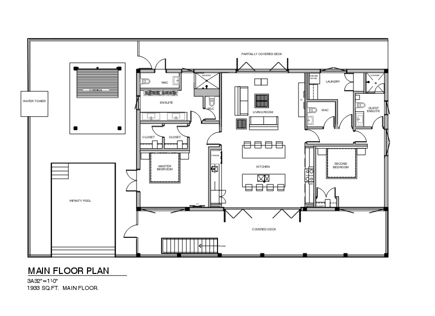 It boasts two en-suite bedrooms on the main floor with additional guest bathroom and laundry room.