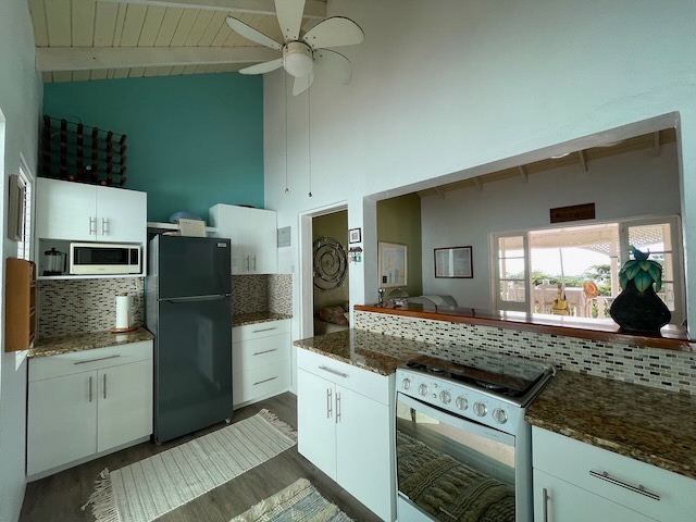 - Natural cooling via ocean breezes, ceiling fans, and AC in the ground-floor unit