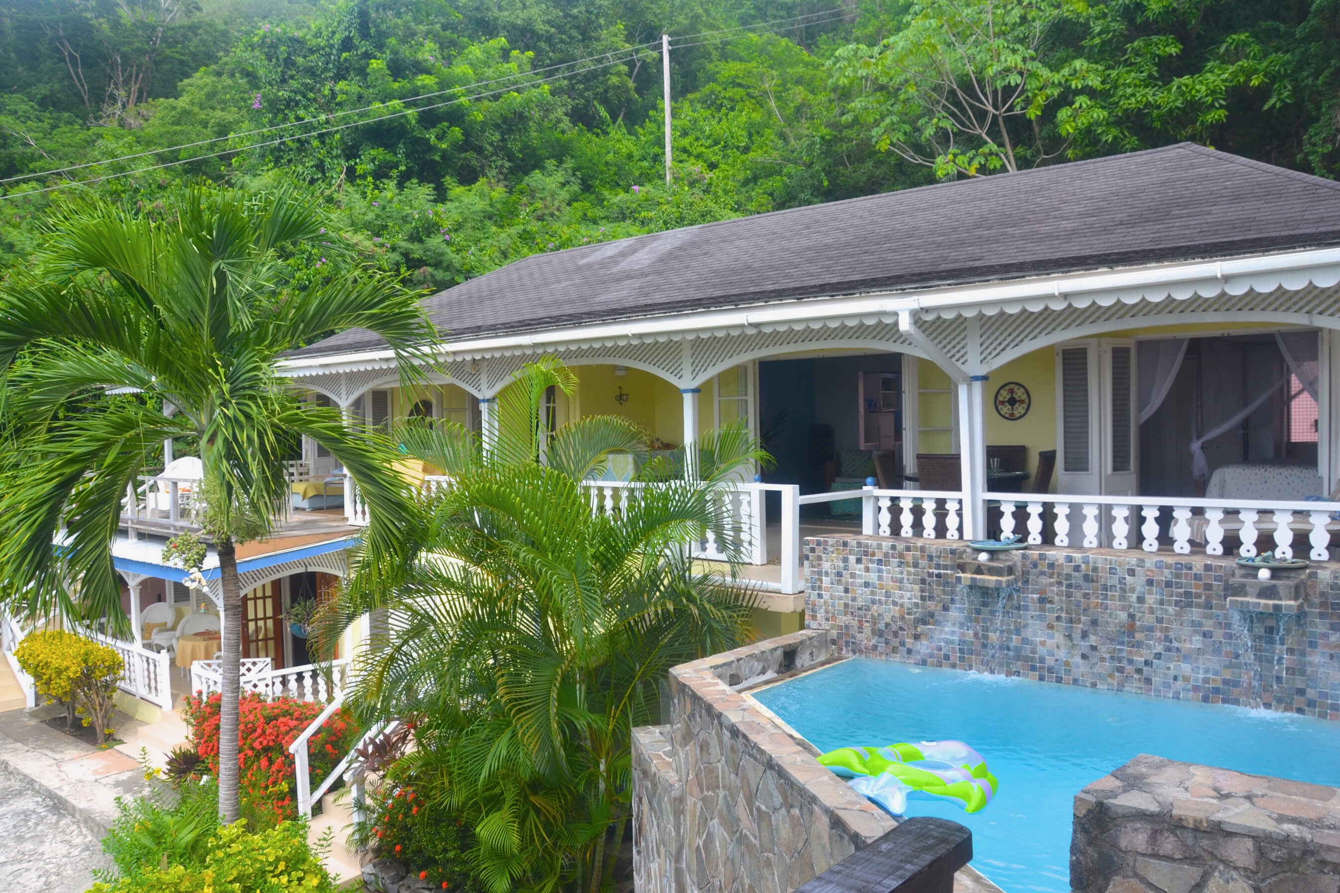 Aqua Villa is a captivating hillside retreat nestled in the highly sought-after Belmont area of Bequia, offering breathtaking west-facing views over Admiralty Bay. Set among lush, mature tropical gardens brimming with papaya, mango, banana, wild cherry, and vibrant bougainvillea, this beautifully maintained property offers both serenity and flexibility.Move-In Ready | Turnkey Investment Opportunity