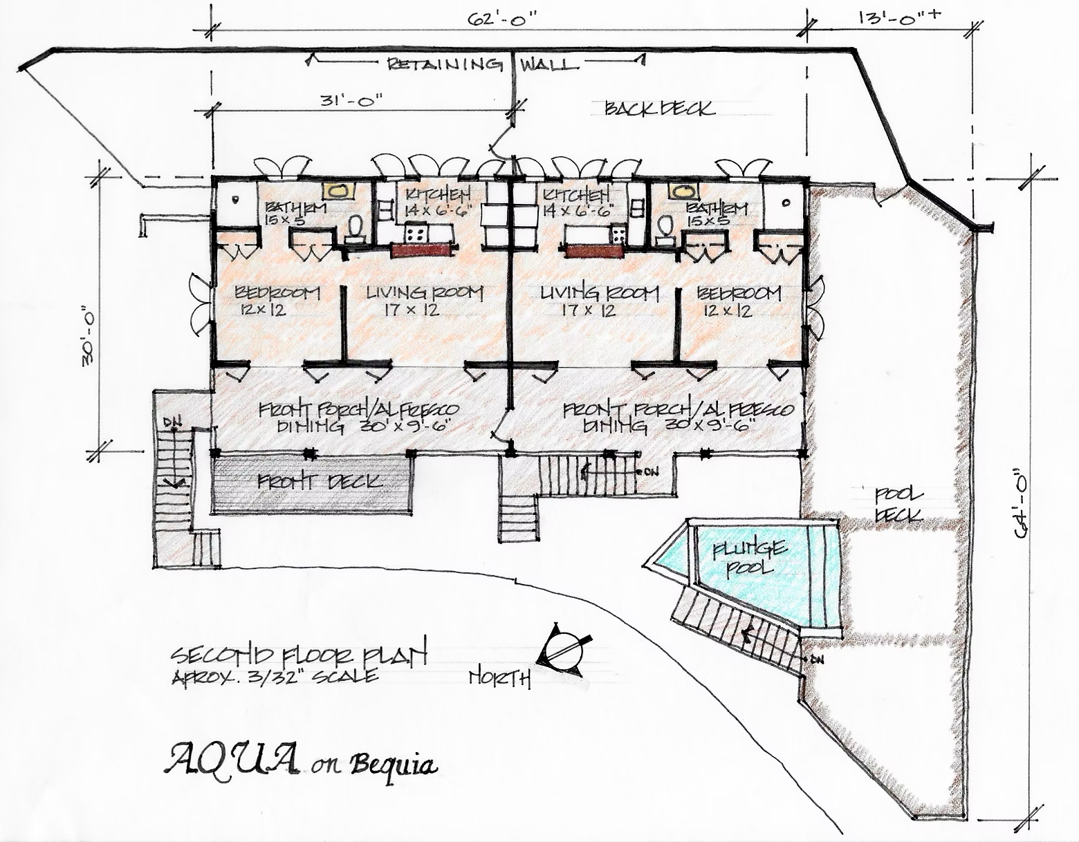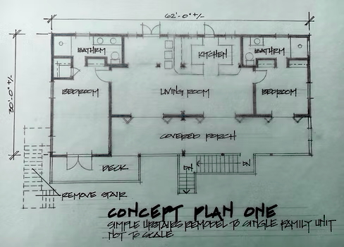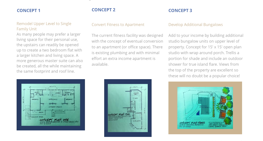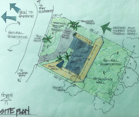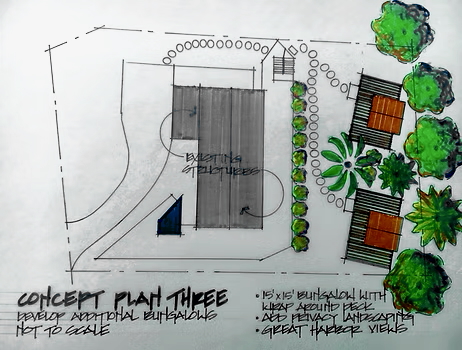 There is space to develop additional studio-style bungalows on the upper portion of the property. A proposed 15'x15' open-plan design with wraparound porches, trellised shade, and outdoor showers would capture the elevated views and deliver significant rental appeal.