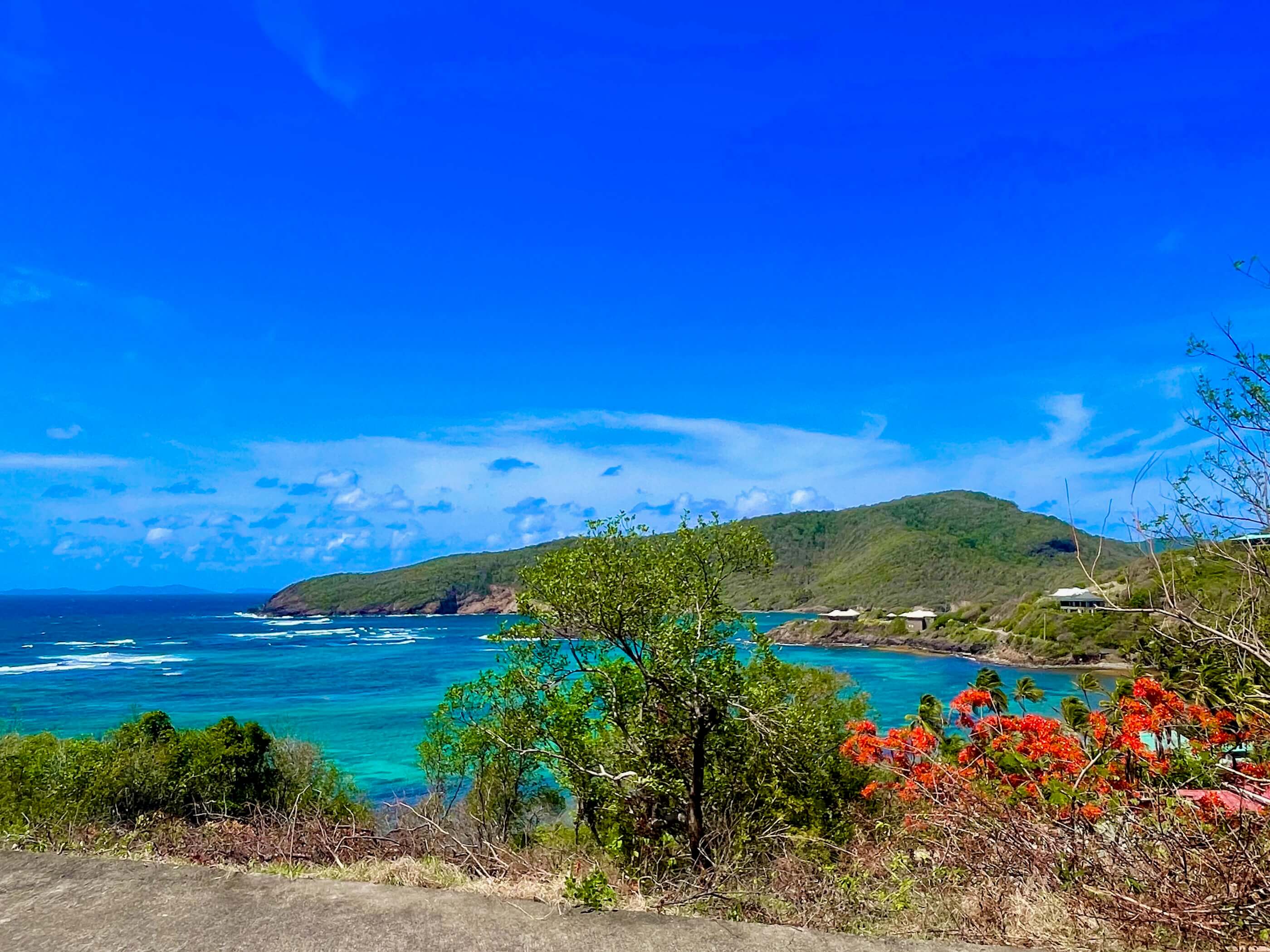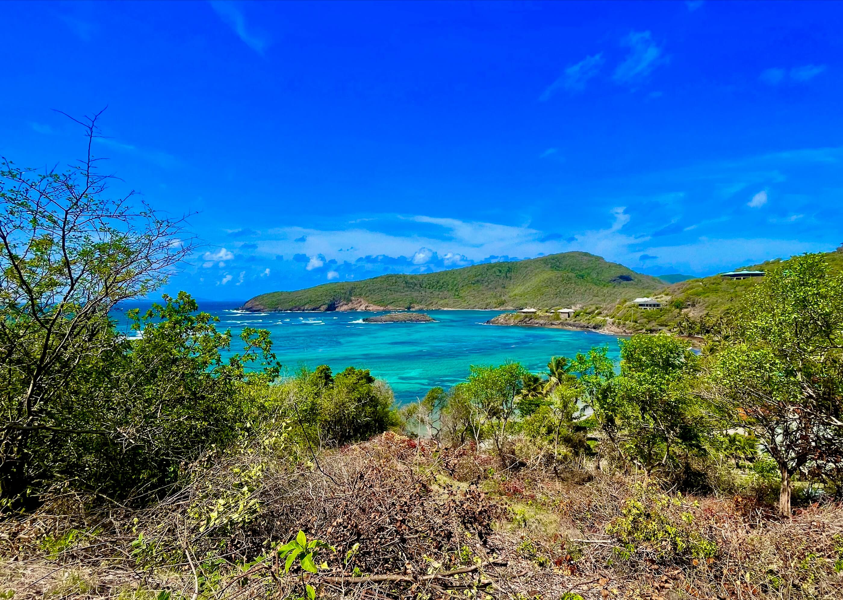 - Fascinating views across Crescent Bay, Crown Point, Spring Point to the south and the islands of Baliceaux & Battowia to the east.