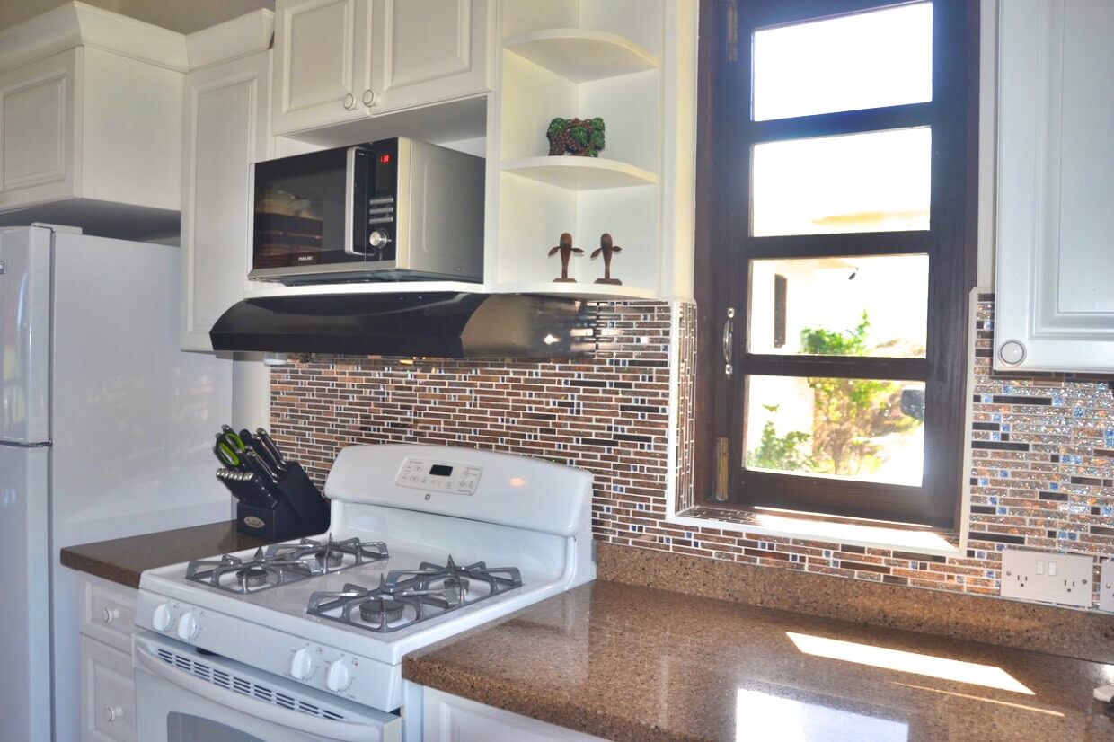 The garden is planted with a lovely selection of tropical fruits including bananas, limes, pomegranate, mangoes, passion fruit, sea grapes & plantain.There is also a back lawned area with BBQ.