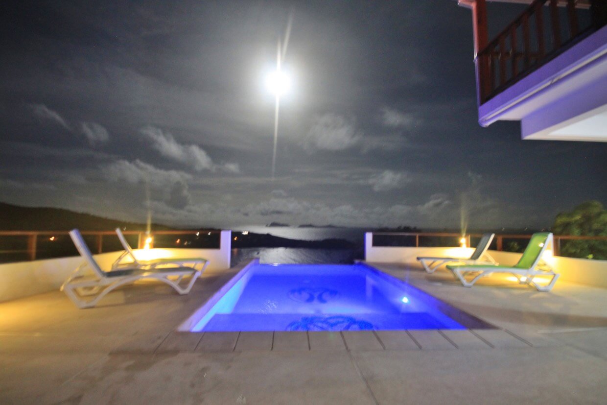 Friendship Breezes has a nice sized salt water swimming pool - 18 ft by 10ft by 4.5 ft Deep with infinity edge.Surrounding the pool is a spacious pool deck / verandah with the balcony above offering partial shade.