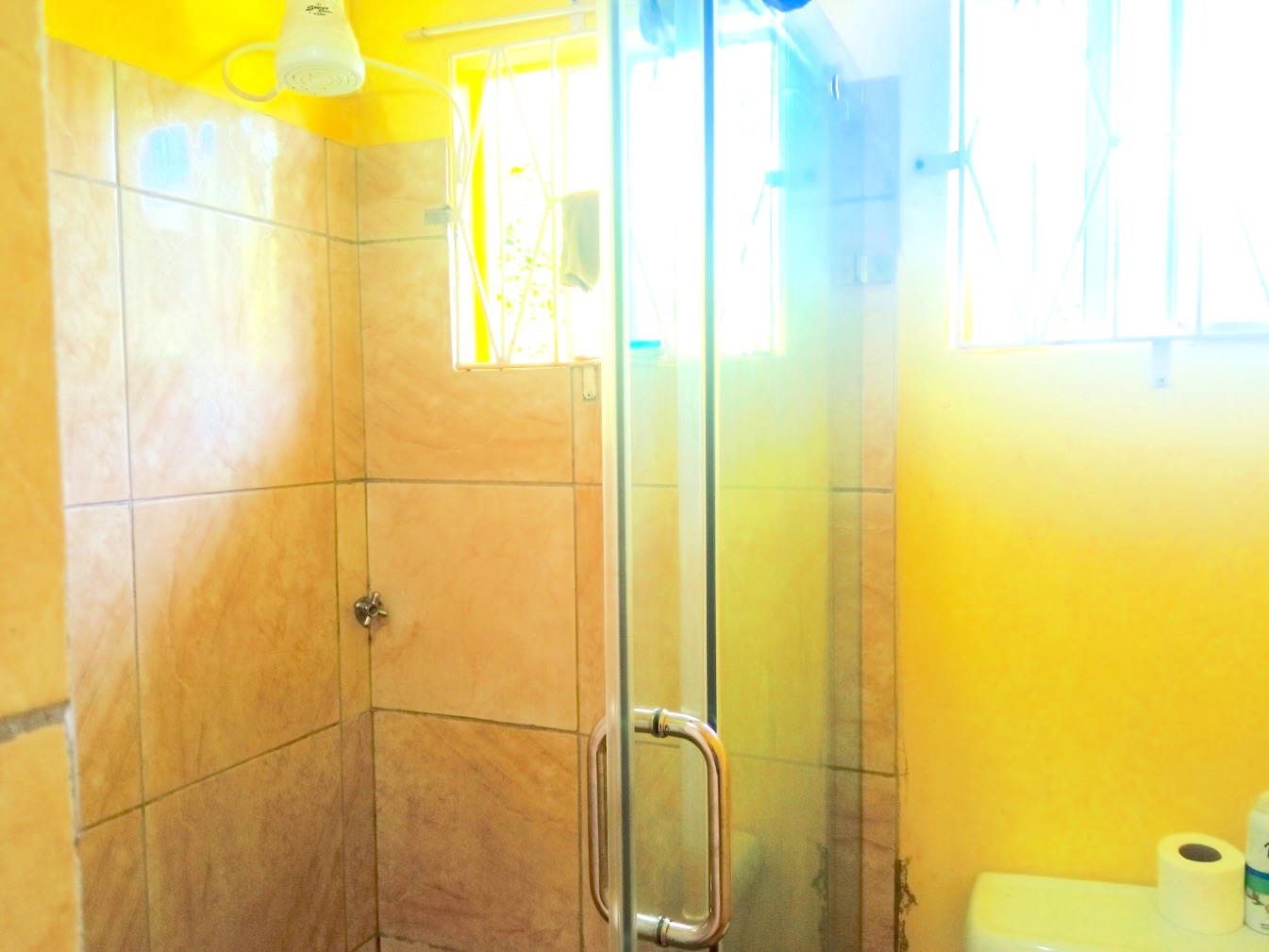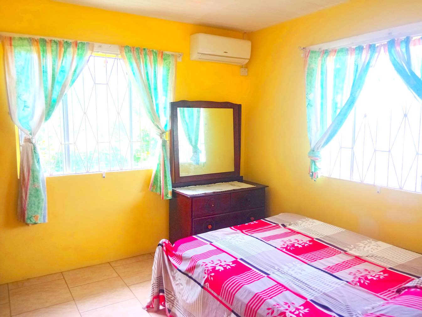 The bedrooms are cool and enjoy the benefit of AC. They have one large shared bathroom with large tiled shower area.