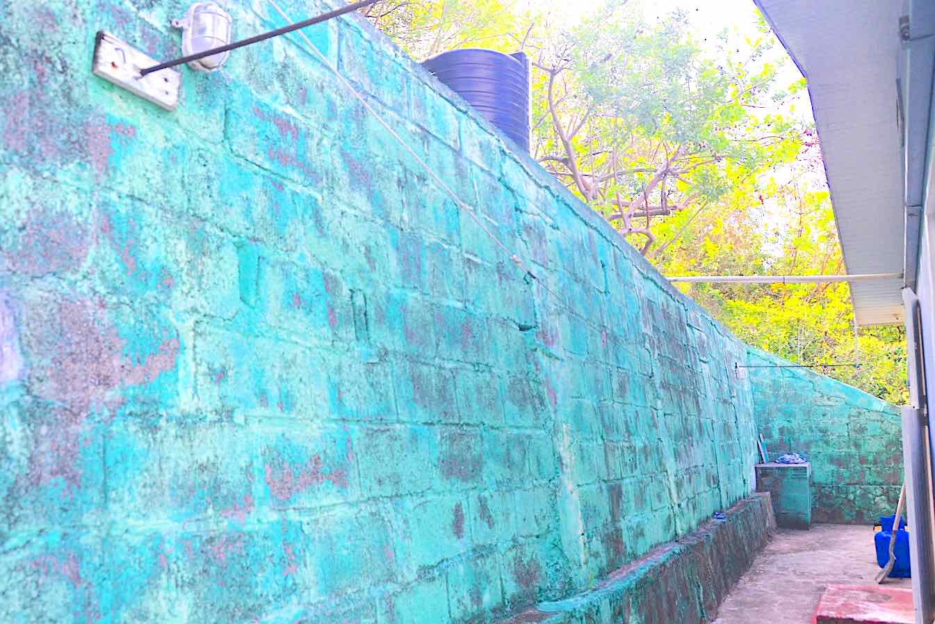 Walls: Concrete blocks, plastered and painted