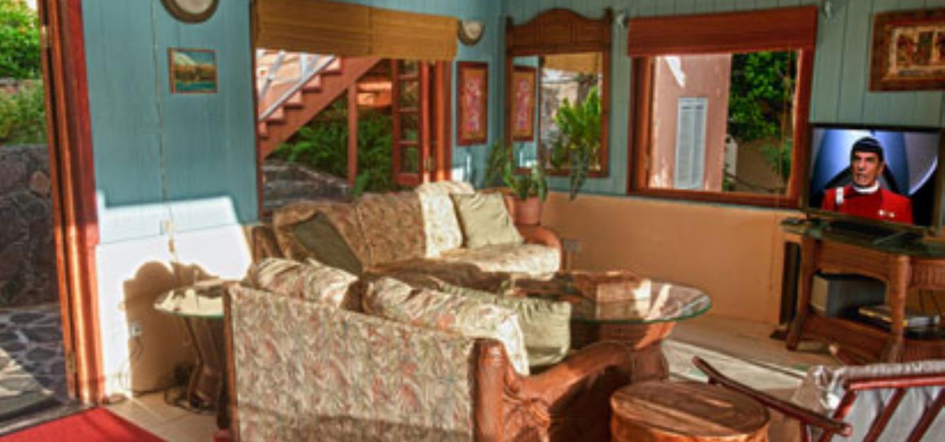 The 4 separate sleeping areas: 1 king, 1 double, 1 queen and 1 twin are each located around the central living space offering all the amenities at close hand but an additional degree of privacy. All air-conditioned and designed in a traditional caribbean colonial style the bedrooms allow guests a private serene sleeping space set amongst fragrant and relaxing tropical woodland.The 4 bathrooms each have hot-water-on-demand showers, although the 4th bathroom is not en suite and a brief distance from the 4th bedroom.Stardust Villa is a popular rental property on the island due to its location, degree of comfort and well equipped interior.