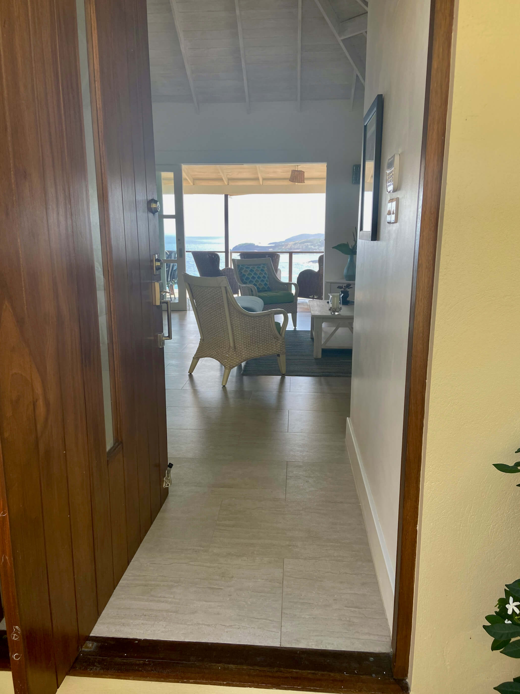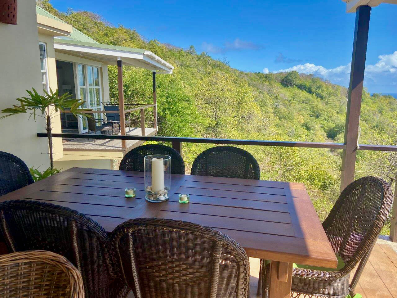 At Last, completed in 2018, is located on a hillside at Friendship Grove, overlooking Friendship Bay. Vistas await as you take in the breathtaking and dynamic views of breaking seas onto reefs, the bordering islands, and the Southern Grenadine Islands of Mustique, Canouan and Union Island. The property is well set back from the road affording on-site parking for 4 cars, is beautifully landscaped and includes an enclosed garage.