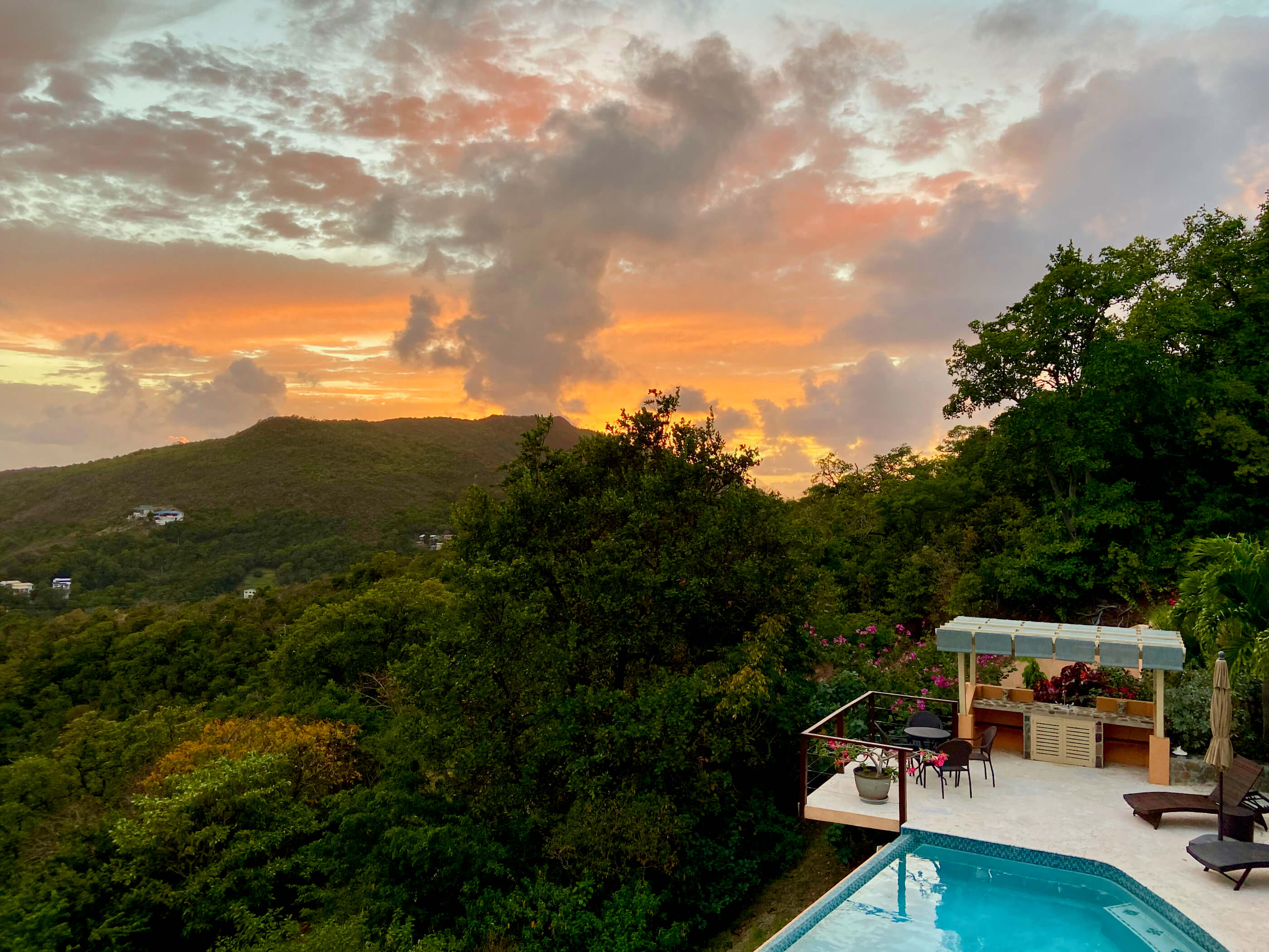 A large third bedroom takes in the gorgeous view the entire length of the room. The bedroom has a an ensuite bathroom with ceiling fan, bedroom ceiling fan and A/C, built-in cabinetry and king-sized four poster bed.The Pool and Deck Area: