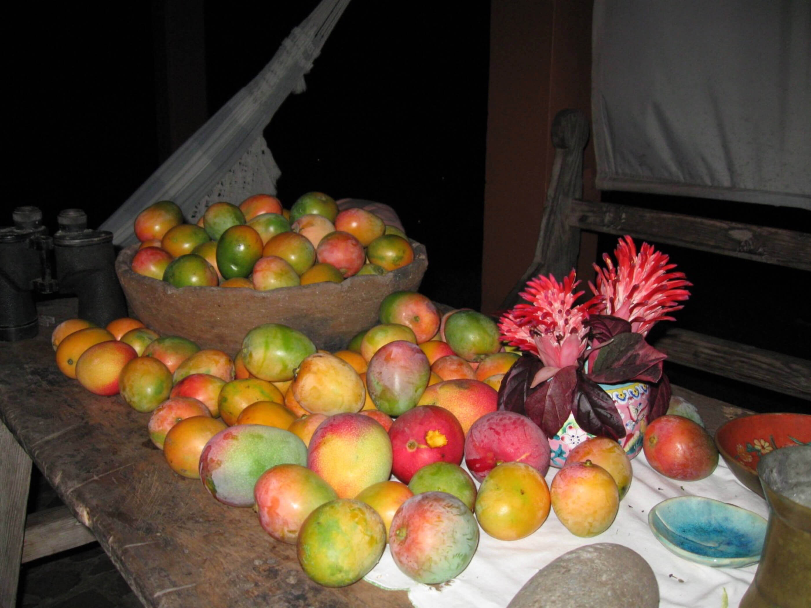 This is a one story home, built on ground level, consisting 2 bedrooms, 1 bathroom, main room and kitchen & office, all spread among three buildings. The house is constructed of cement, stone and red tile for flooring, circular stone walls and stone terracing between the buildings. Every room opens to patios, bringing inside the tropical gardens and beautiful views.