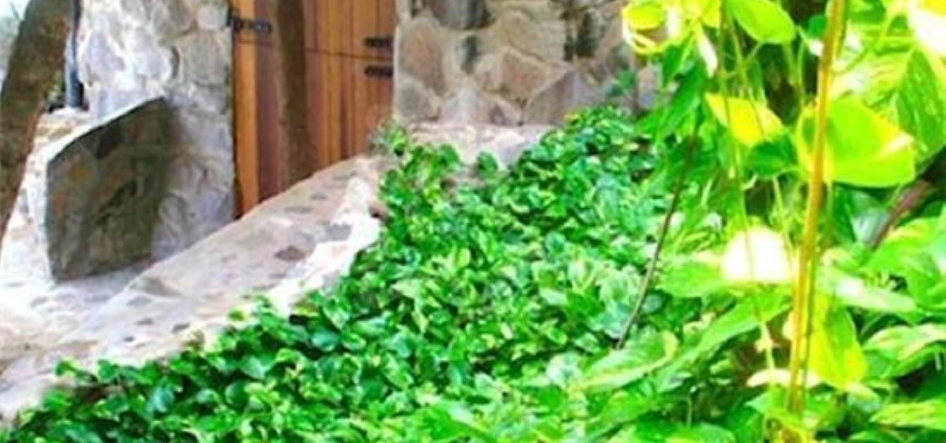 The twisted trunks of native trees incorporate their forms into this property through the arched windows that surround the property.