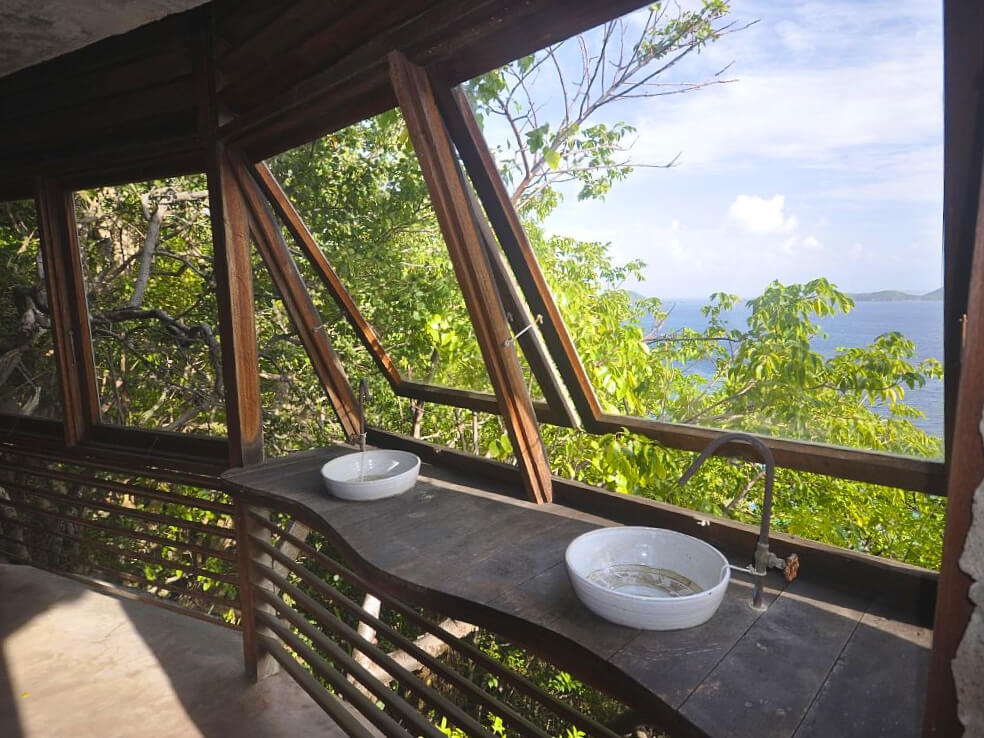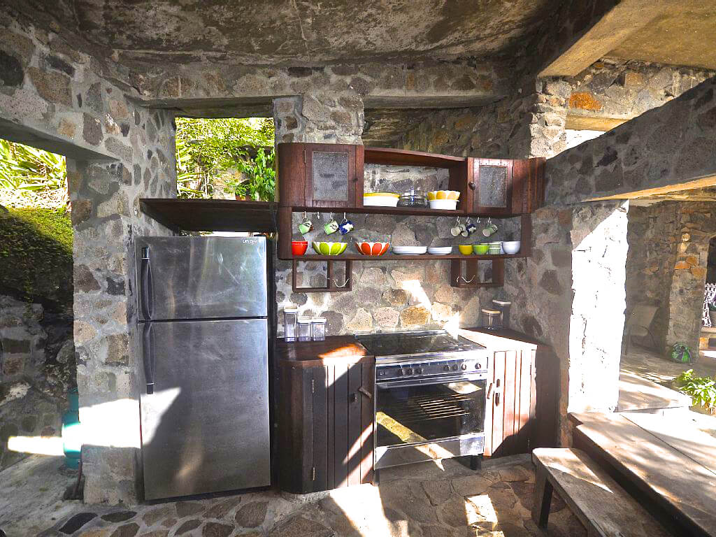 The Moonhole community, created in the 60's by a group of friends who enjoyed sailing around Bequia and the Caribbean, was built using local materials sympathetically echoing the landscapes curves. The large arched windows have no glass, are open to the hummingbirds and cooling windward breezes. The properties, though all different, share open stone, unfused, interiors with little to distract the guests away from the climate or the views.