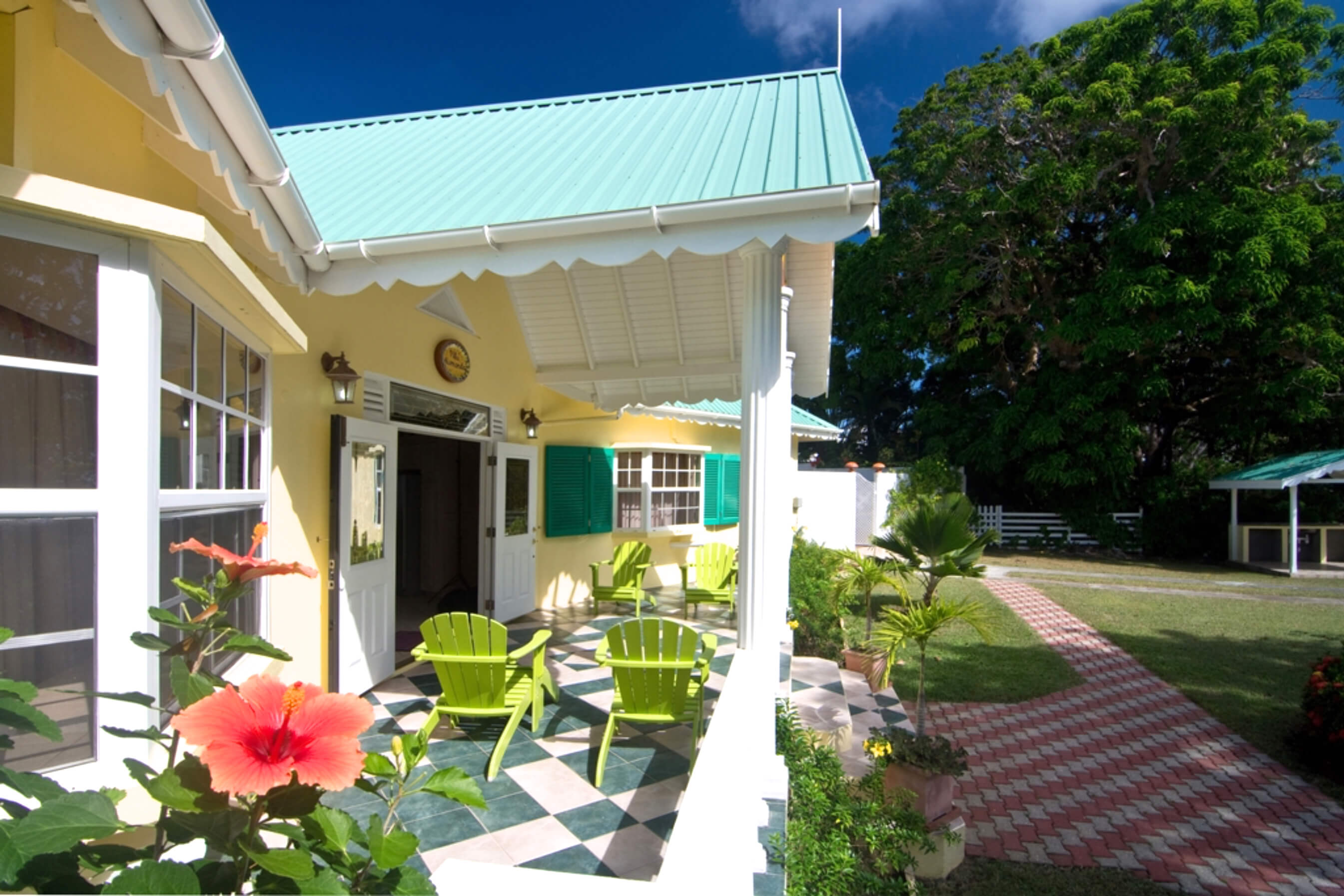 This villa has traditional colonial charm and elegance with sweeping verandas at the front and rear. Allamanda has been painted in a cool buttermilk and throughout the property one can find a subtle geometric pattern in areas such as the tiled entrances and bathroom styling.