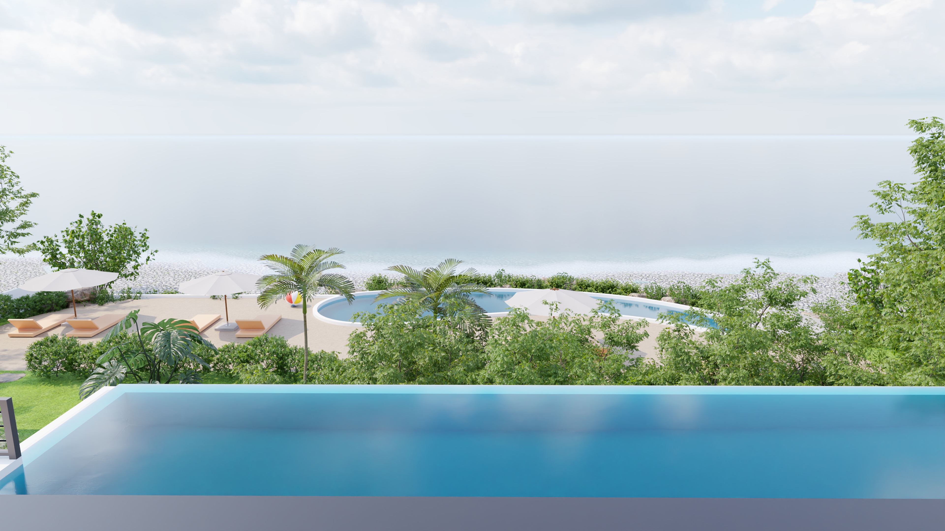 - Location ideal for installing a sandy beach area in front of an infinity pool set back from the shore }