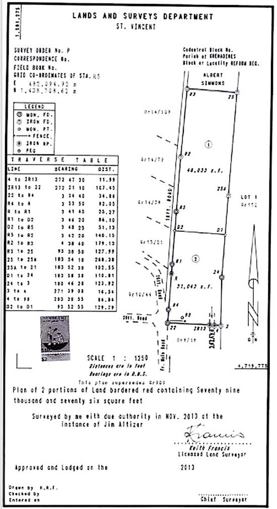 From this plot there are panoramic views over Admiralty Bay extending across to the Belmont Walkway, Princess Margaret Beach, Lower Bay Beach and West Cay. On a clear day Mustique and Canouan islands can be seen from here.