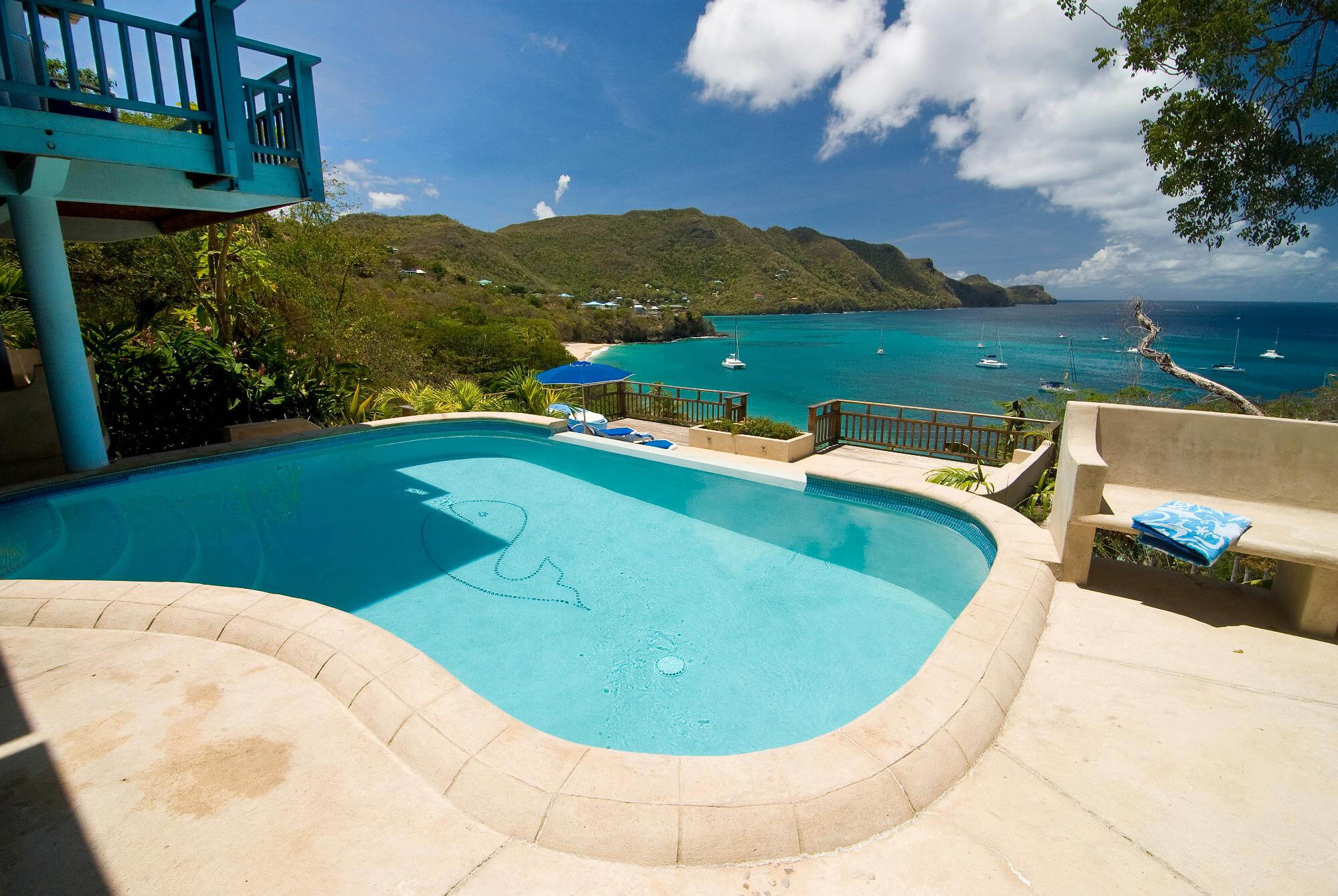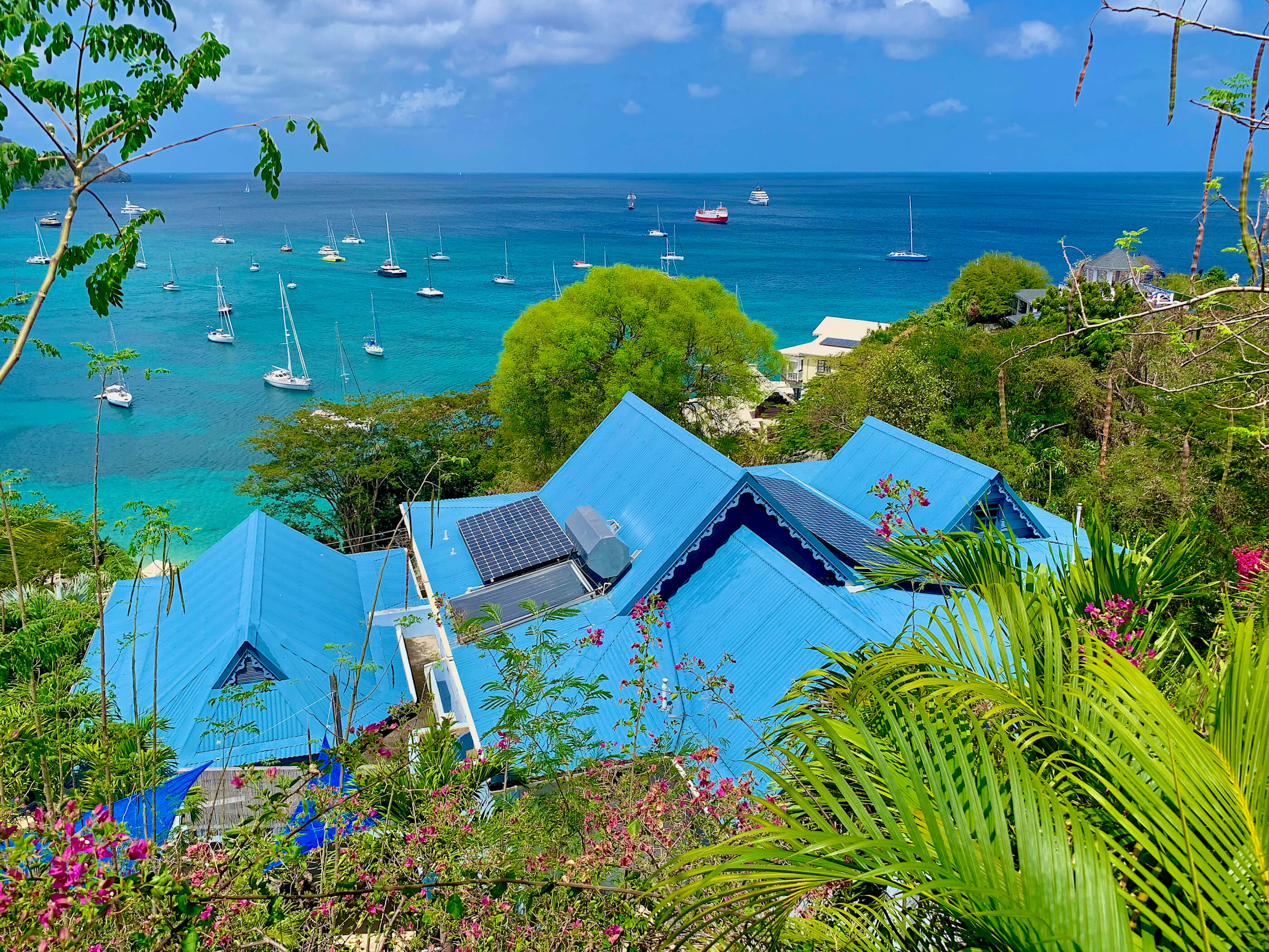 This modern villa, built in 2010, has one of the best locations on Bequia. A Shade of Blues is situated directly above the golden sand of Princess Margaret Beach, a beautiful unspoilt crescent of sand named after the Royal Princess Margaret who enjoyed swimming there when she visited the island from nearby Mustique.