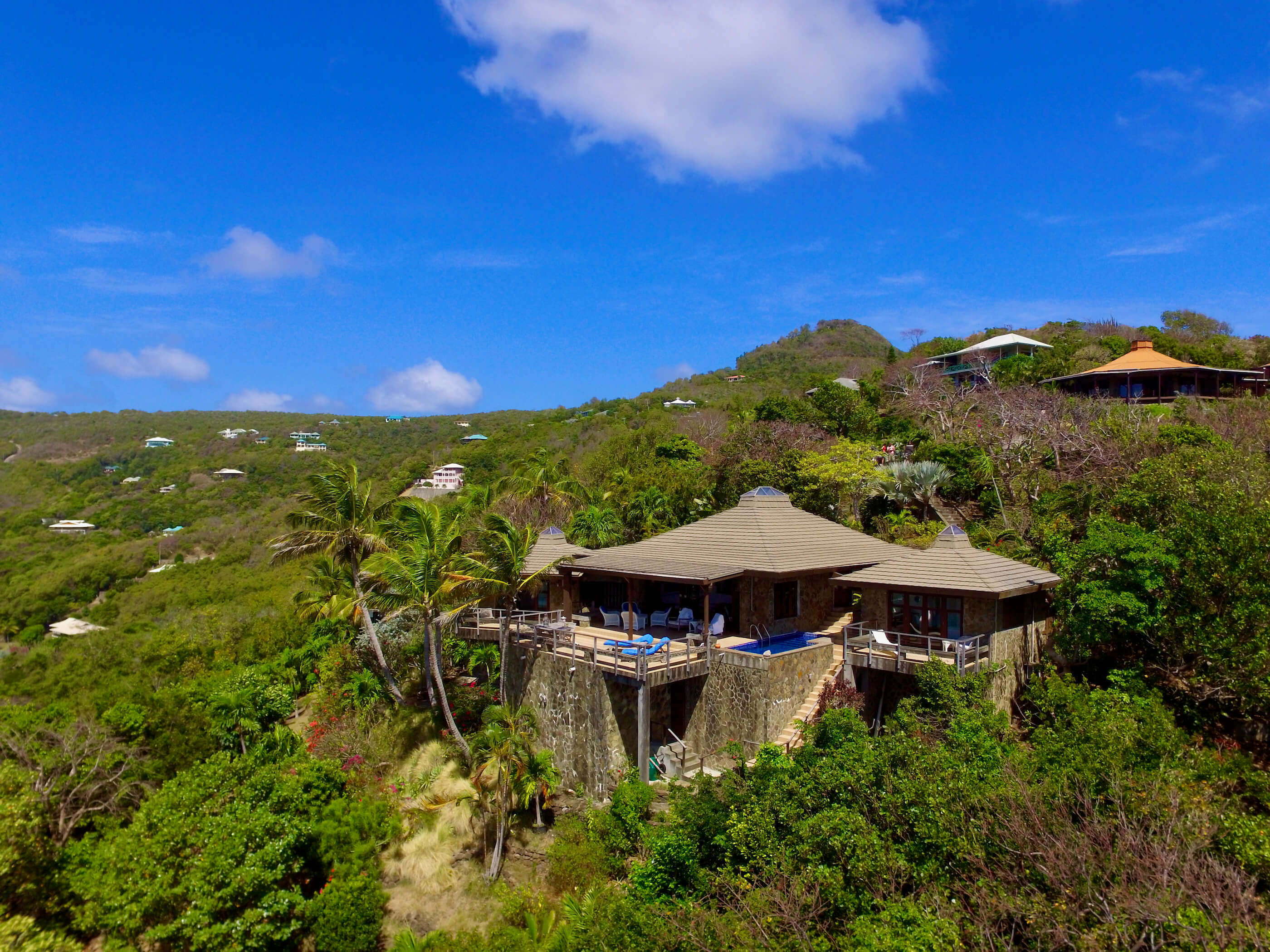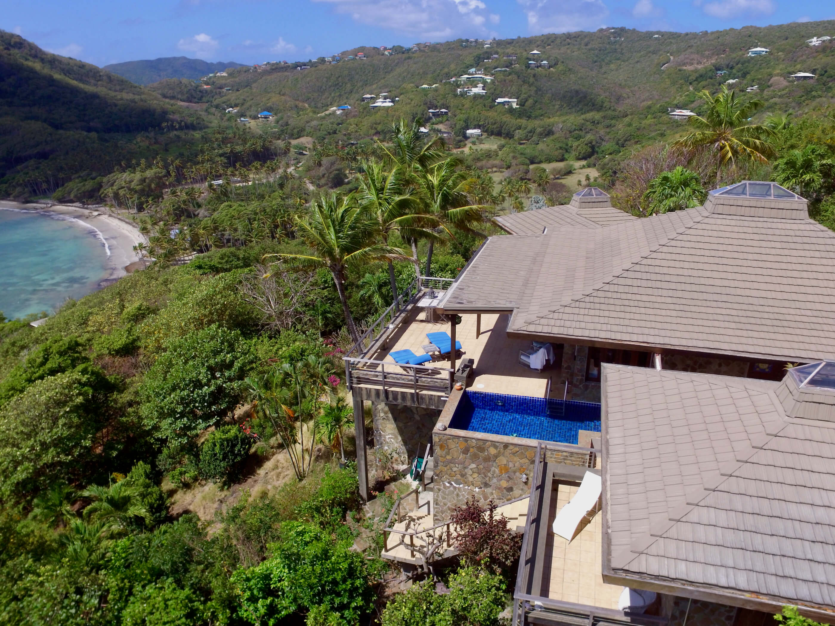 A sophisticated house in a uniquely desirable location above Crown Point with views over the palm trees and turquoise waters of Spring Bay and across the ocean to the uninhabited islands of Balliceaux and Battowia. This large 3 bedroom house which warrants the attention of the most discerning and fastidious buyer has been constructed from Brazilian Greenheart and Bequia stone.