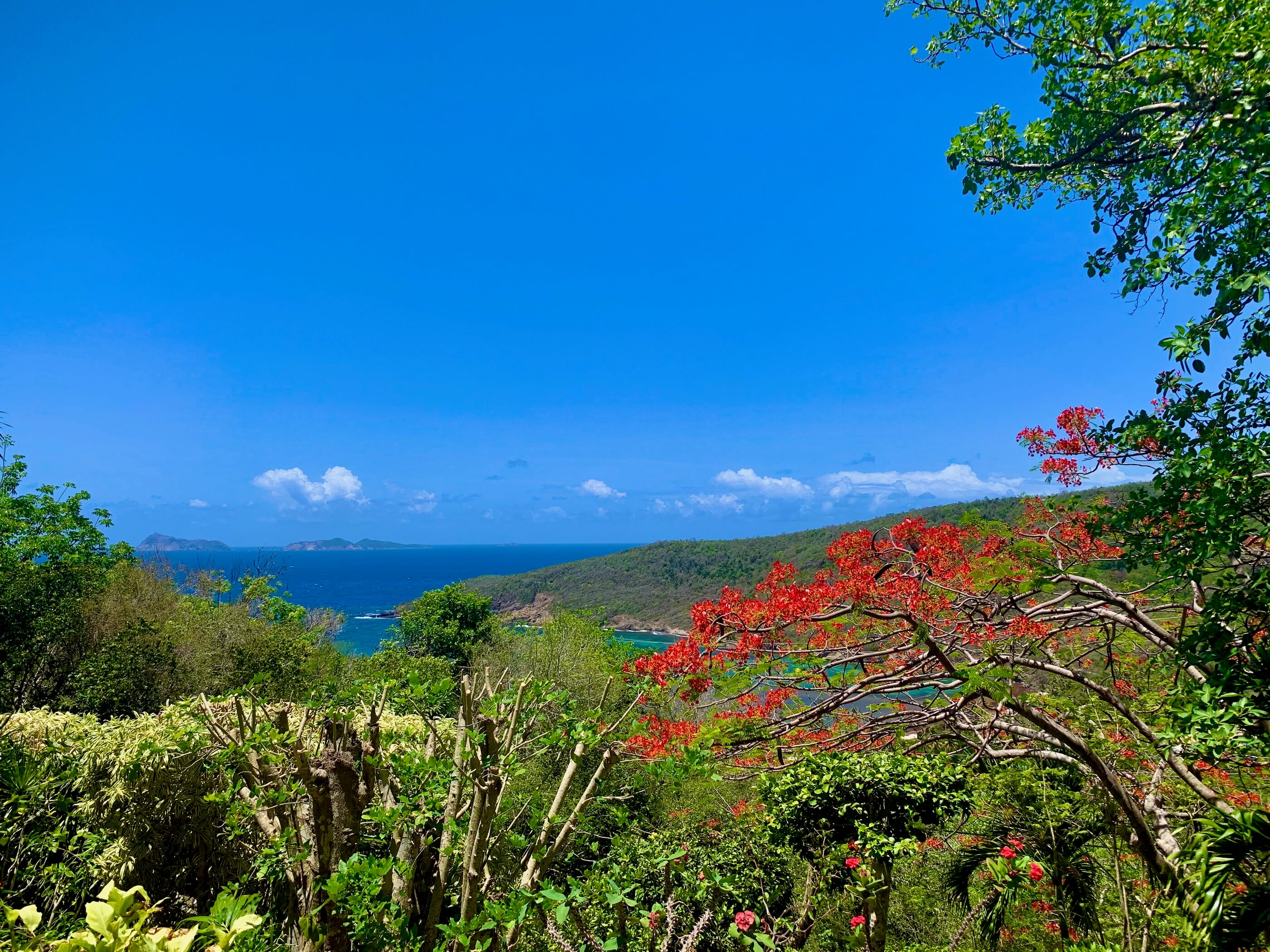 - A variety of tropical fruit trees including lime, mango, Bequia plum, and sugar apple