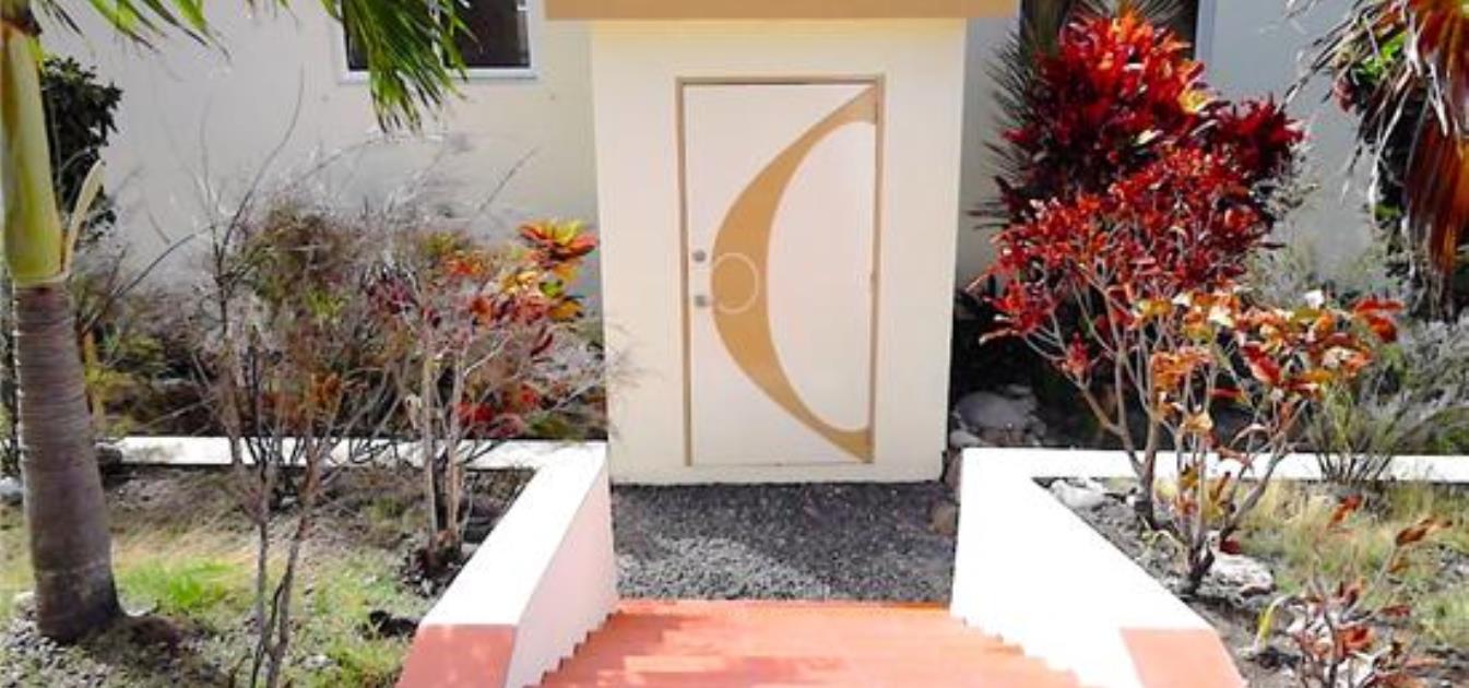 The house can be easily closed down in preparation for hurricane. Protective boards simply bolt onto the walls on top of the windows and sliding doors