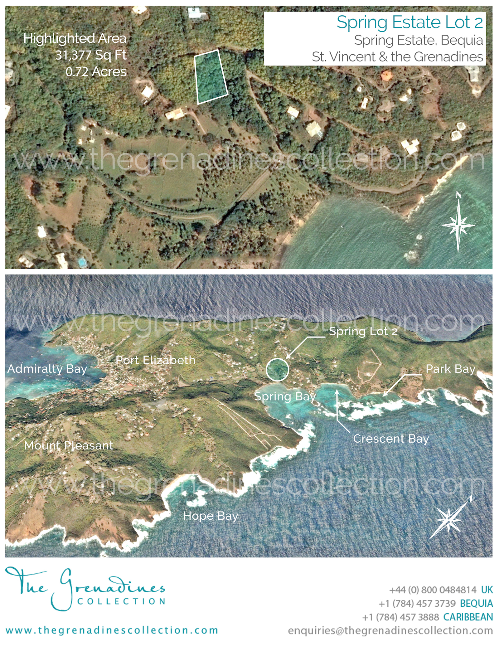 Located in the highly sought after Spring Estate on Bequia's East coast, Lot 2 is just 400 feet from the beach at Spring Bay. The relatively flat / gently sloping land offers elevated views over Spring Bay and a prime plot for building.