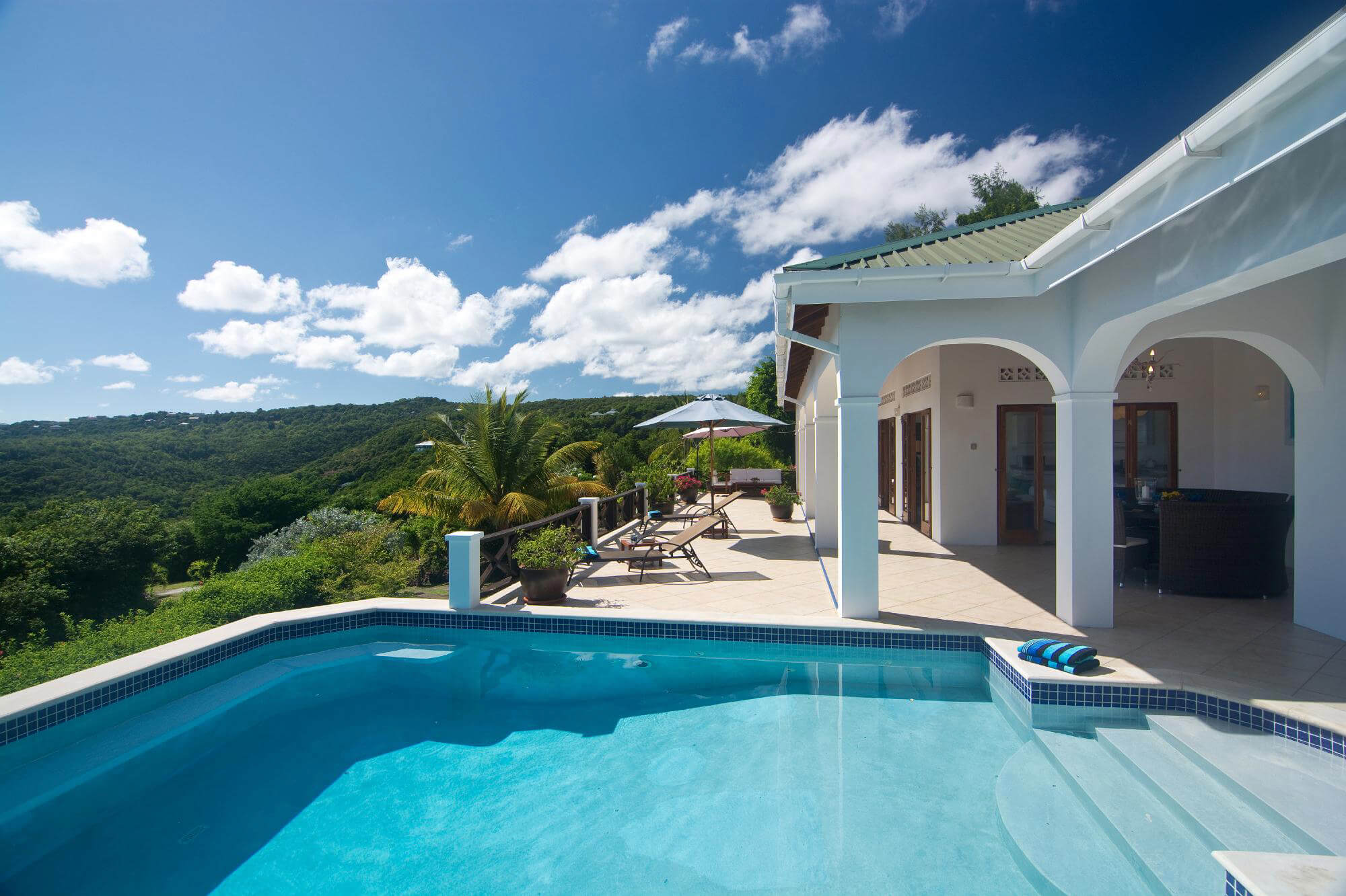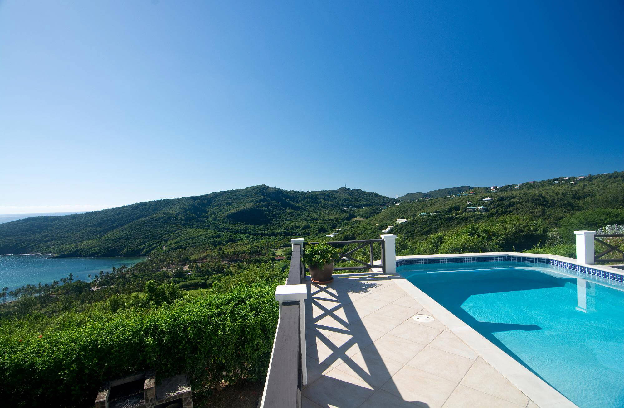 Tamarind has a classical saltwater 25 ft swimming pool which overlooks the valley and ocean. The pool has entrance steps at the shallow end and a bench seat facing the islands of Balliceaux & Battowia.