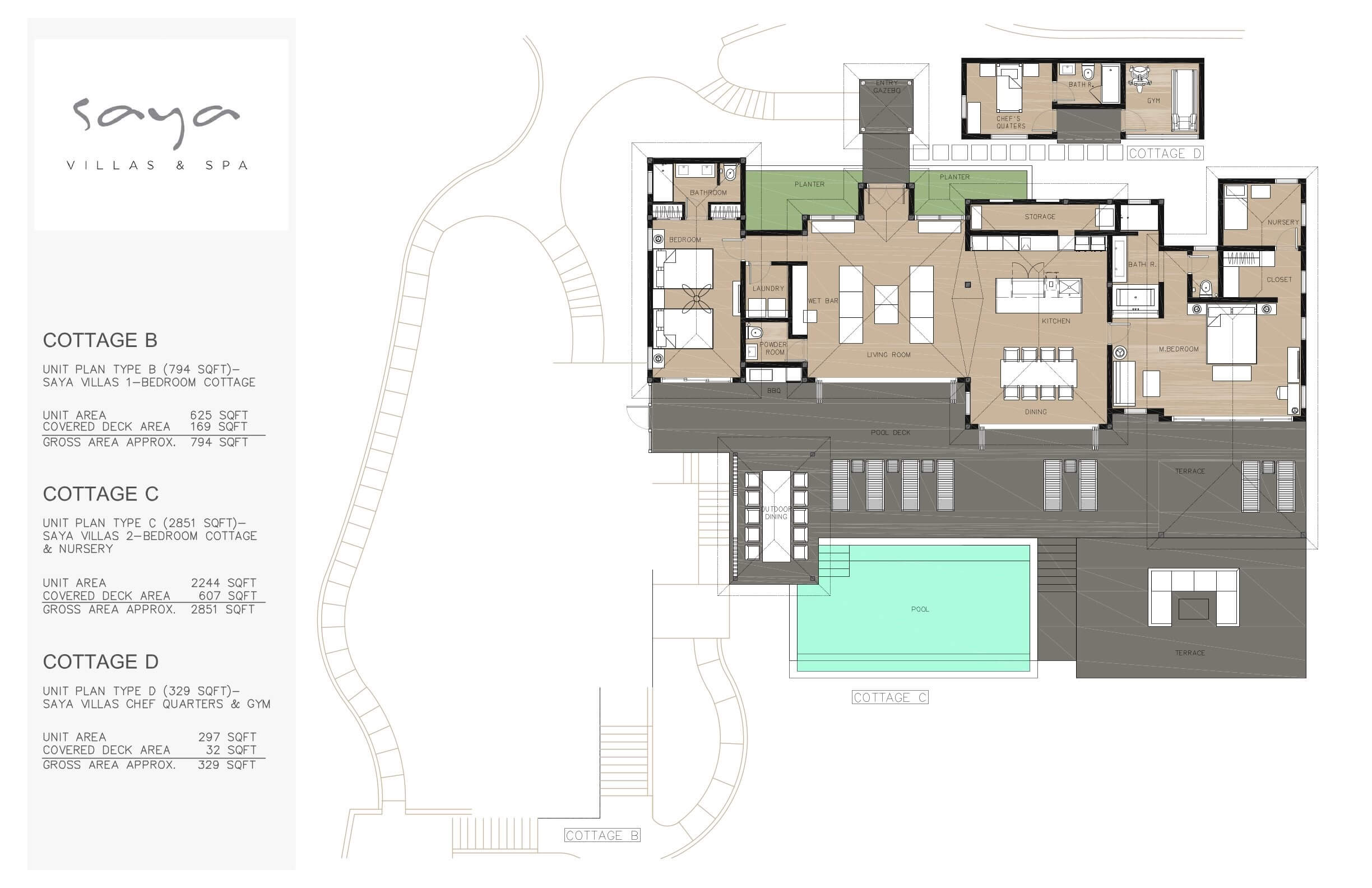 - Cottage C (Main Villa): 2,851 sq ft