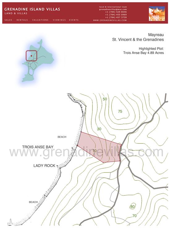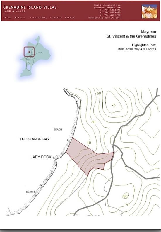 This perfectly located 10 acre site is available as two 5 acre plots with equal beach frontage of over 200 feet. The North plot includes a small hillock at the top of very gently sloping land from the beach, and the South plot slopes up from the beach to the ridge and is closer to Lady Rock ridge at its southern boundary.This is a completely unspoilt paradise at the very centre of the Grenadines. Mayreau forms the western perimeter of the Tobago Cays National; Park and Marine Reserve where 5 miles of coral reef encircle four desert islands set in an incredible turquoise lagoon.Here is the opportunity to take responsibility for land on the beach with 5 acres of tropical woodland a short stroll from the village.