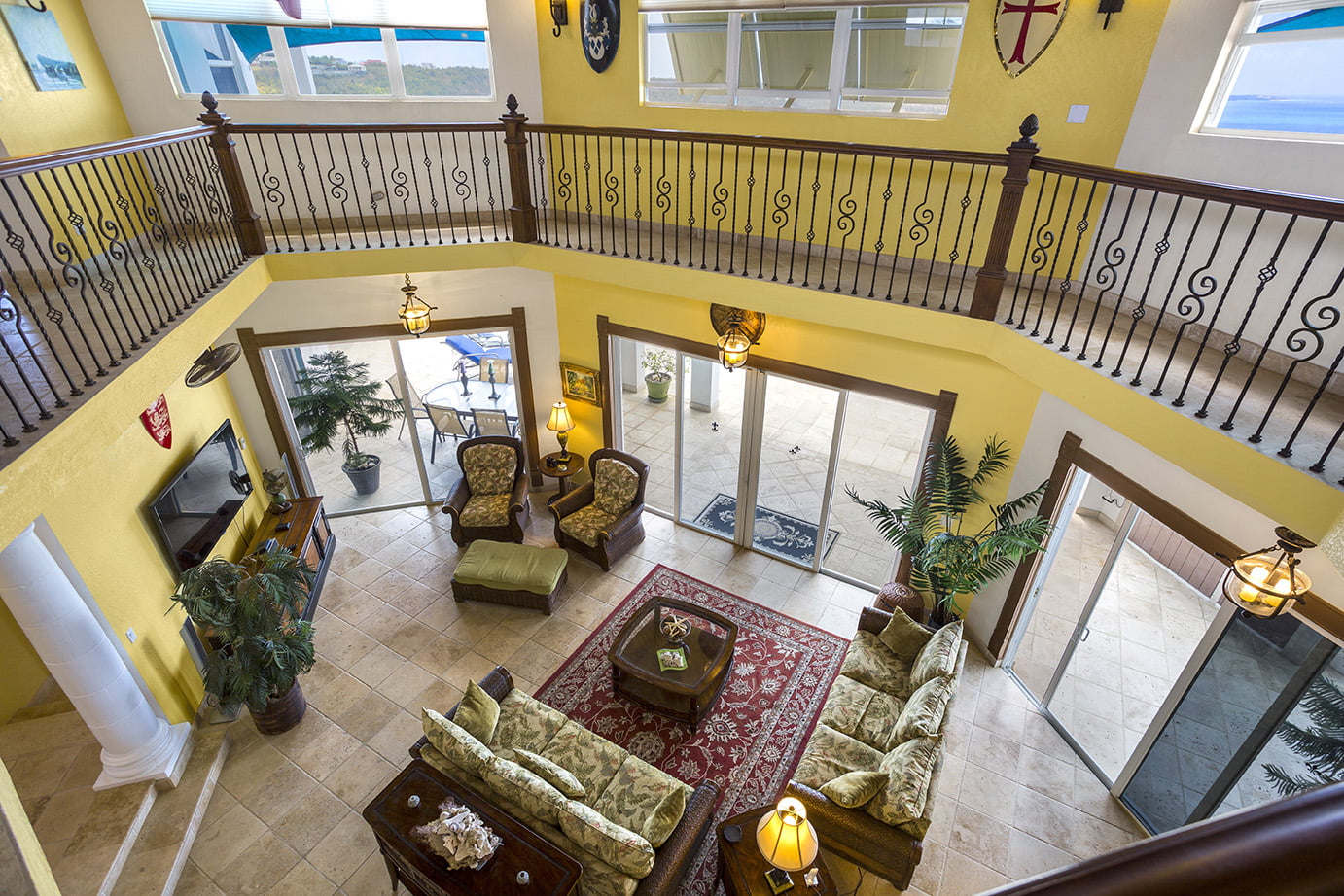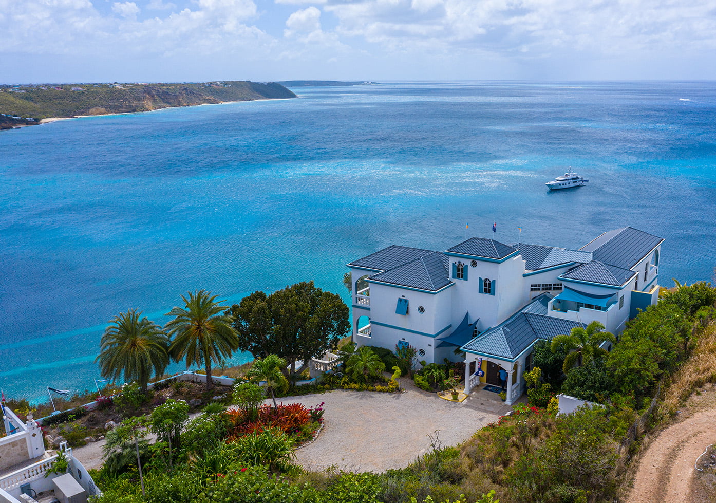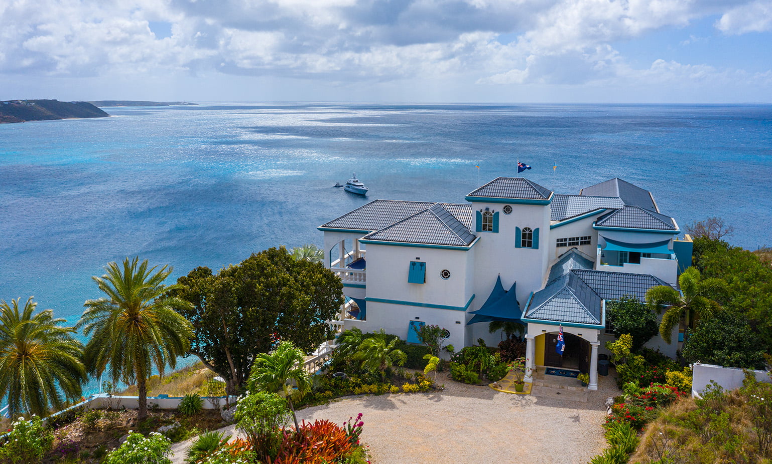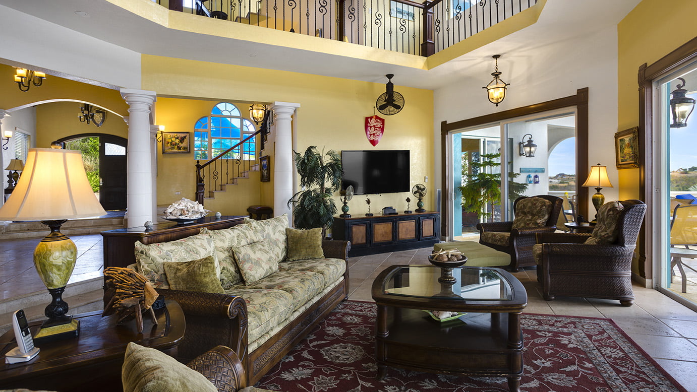 The 400 sq ft infinity edge pool has uninterrupted sea views right down the coast to Crocus Bay below and out to Sandy Island and Prickly Pear Cays.