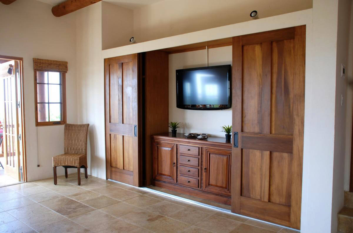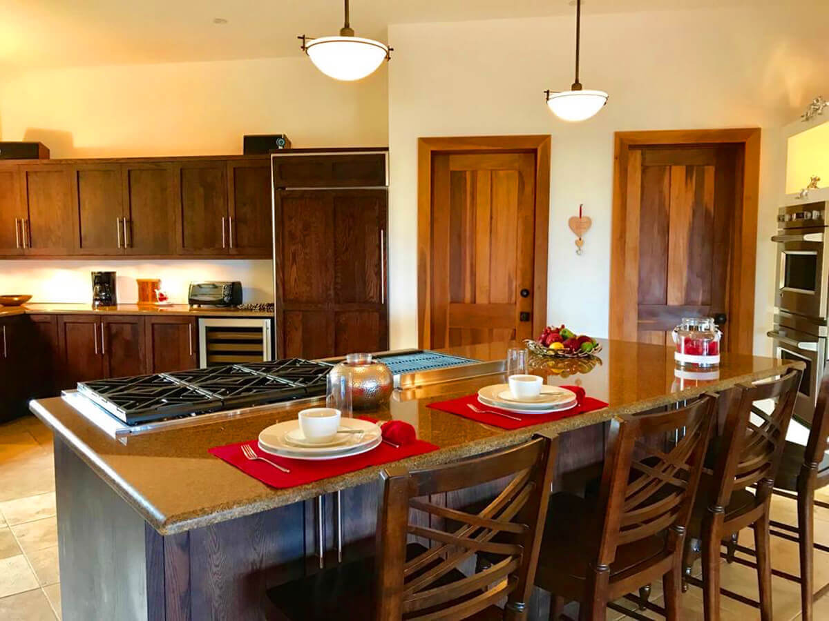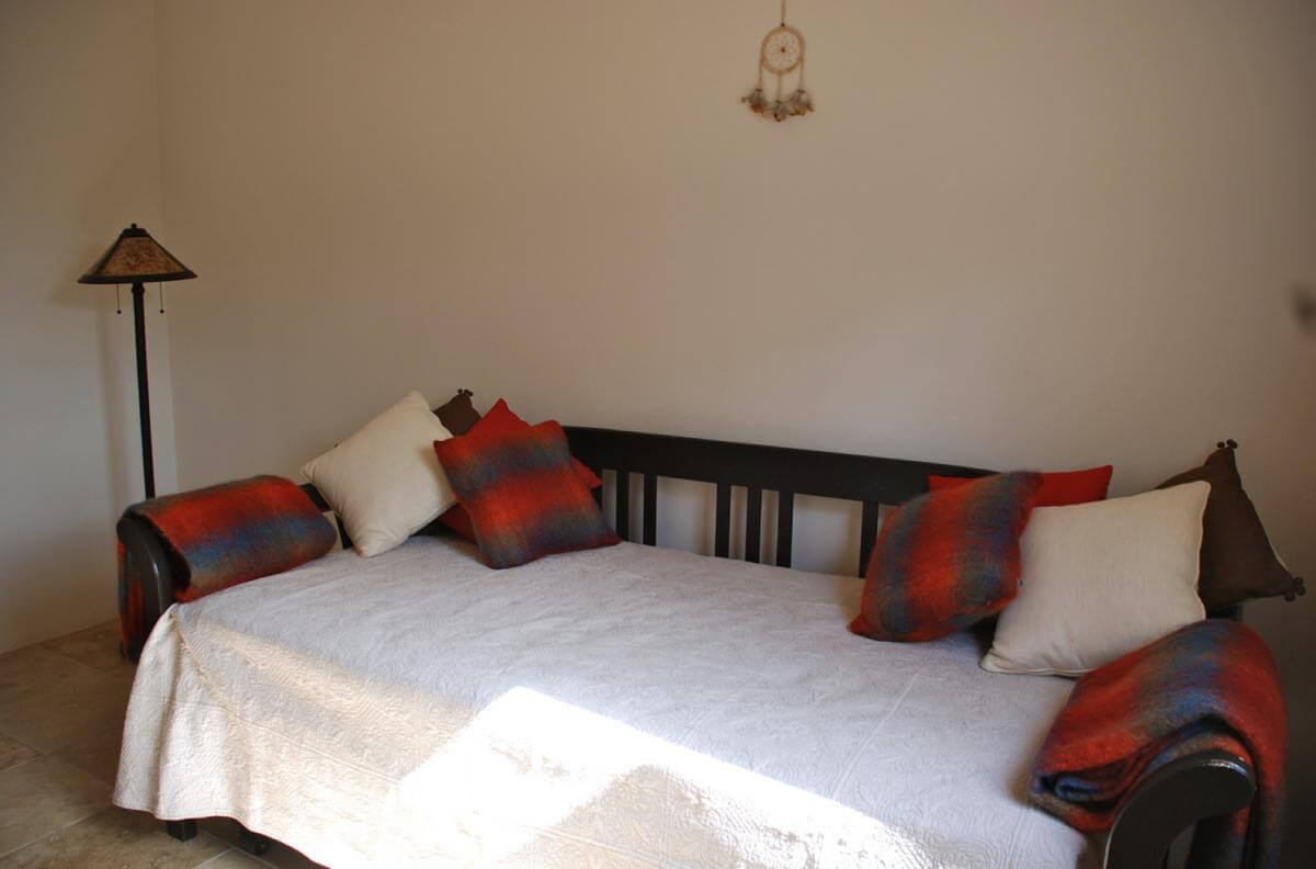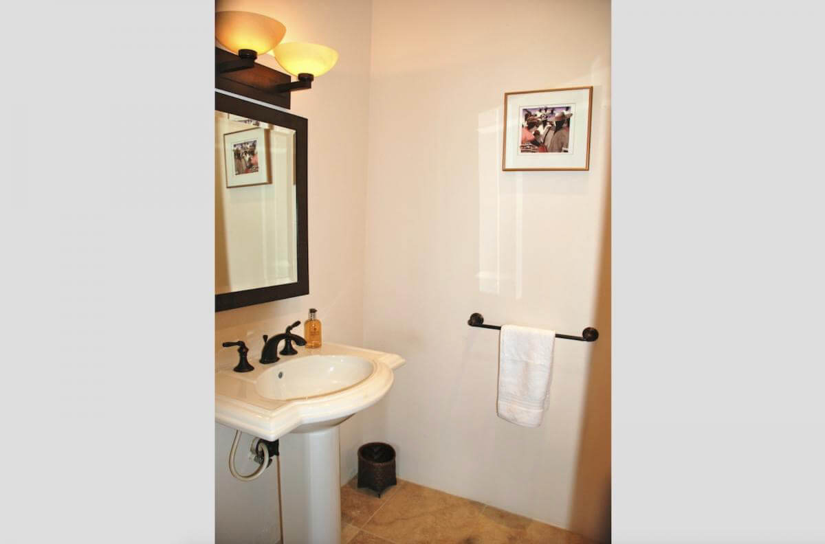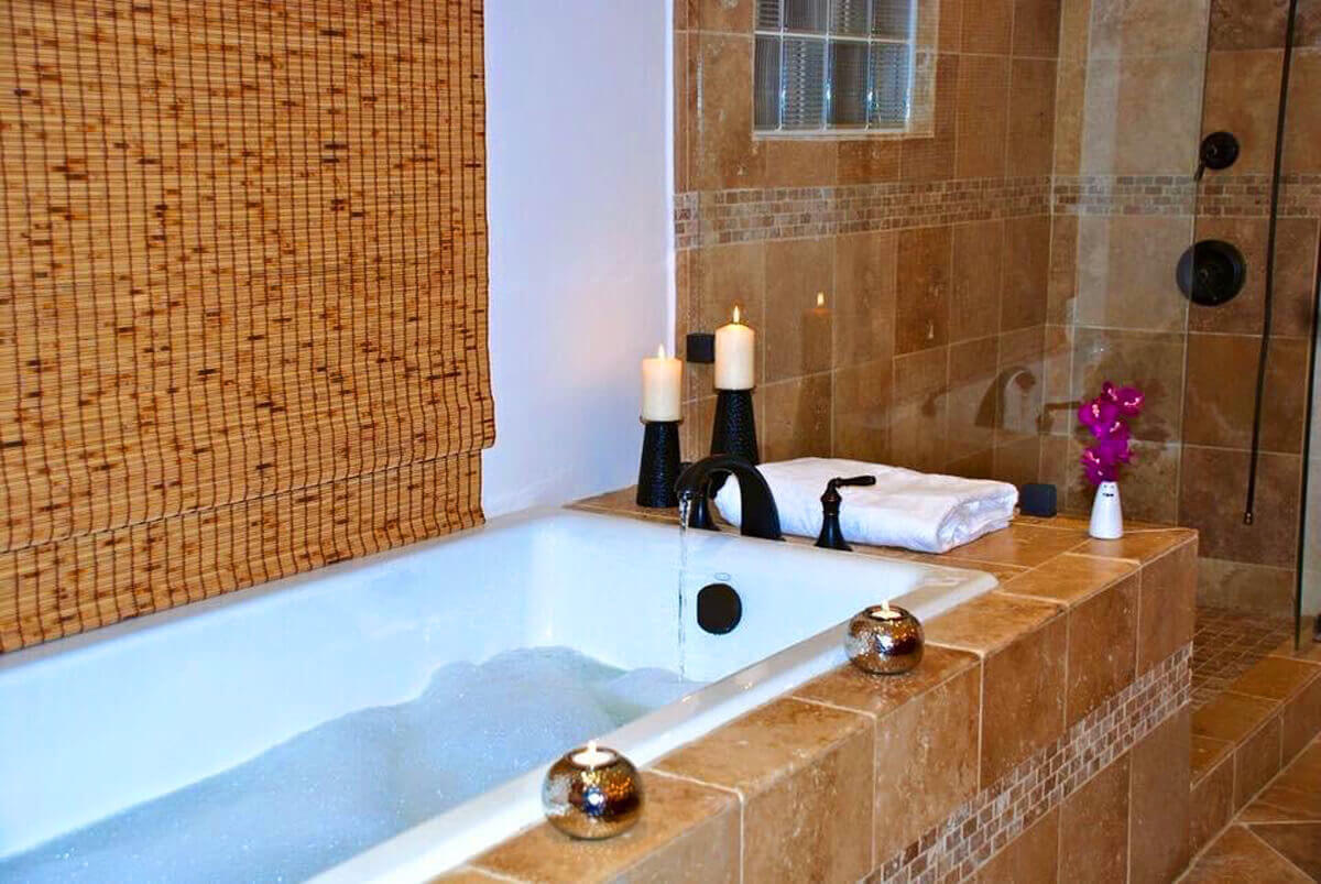 The kitchen, dining, and sitting areas open to the veranda to become one spacious living and dining area. The dining room has an imported Brazilian hardwood table that comfortably seats eight. The living area features a TV and a built-in fireplace, which uses liquid fuel gel to provide ambiance without heat. The air-conditioned, professionally designed chef’s kitchen features granite countertops and top quality appliances, including a Viking double oven, a Viking grill, a GE monogram six-burner gas stove, a warming oven, an American fridge, an ice maker, a wine fridge, and two dishwashers. All three bedrooms are air-conditioned and have ensuite bathrooms, Sonos sound systems, and flatscreen TVs. The master suite has a king bed, a walk-in dressing room, and a DVD player. Its ensuite bathroom has a deep tub, a walk-in shower, and a dual vanity. Plus, it has a private balcony overlooking Shoal Bay. The second suite has a four-poster king bed and french doors that open to the veranda. Its ensuite bathroom has a large shower and dual vanity. The third suite has a queen bed. It shares a bathroom with the office, which acts as an optional fourth suite. This fourth suite has a daybed and trundle.
