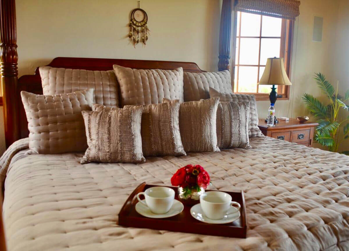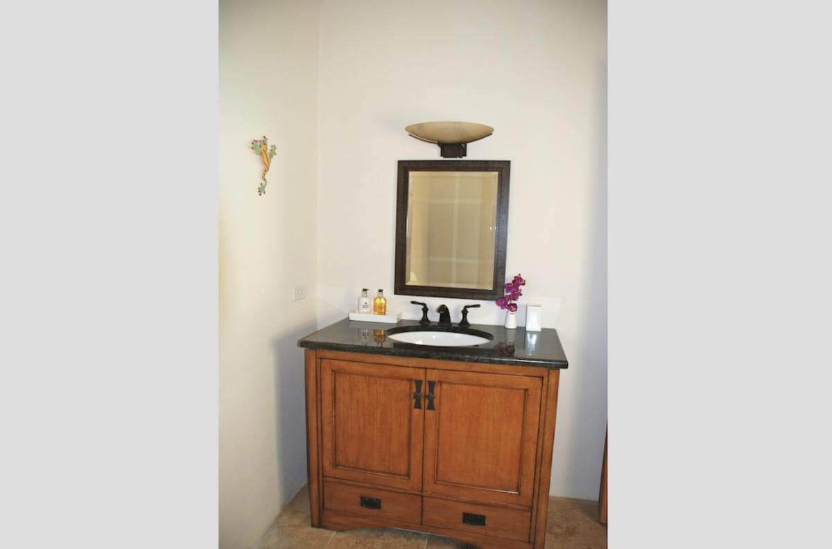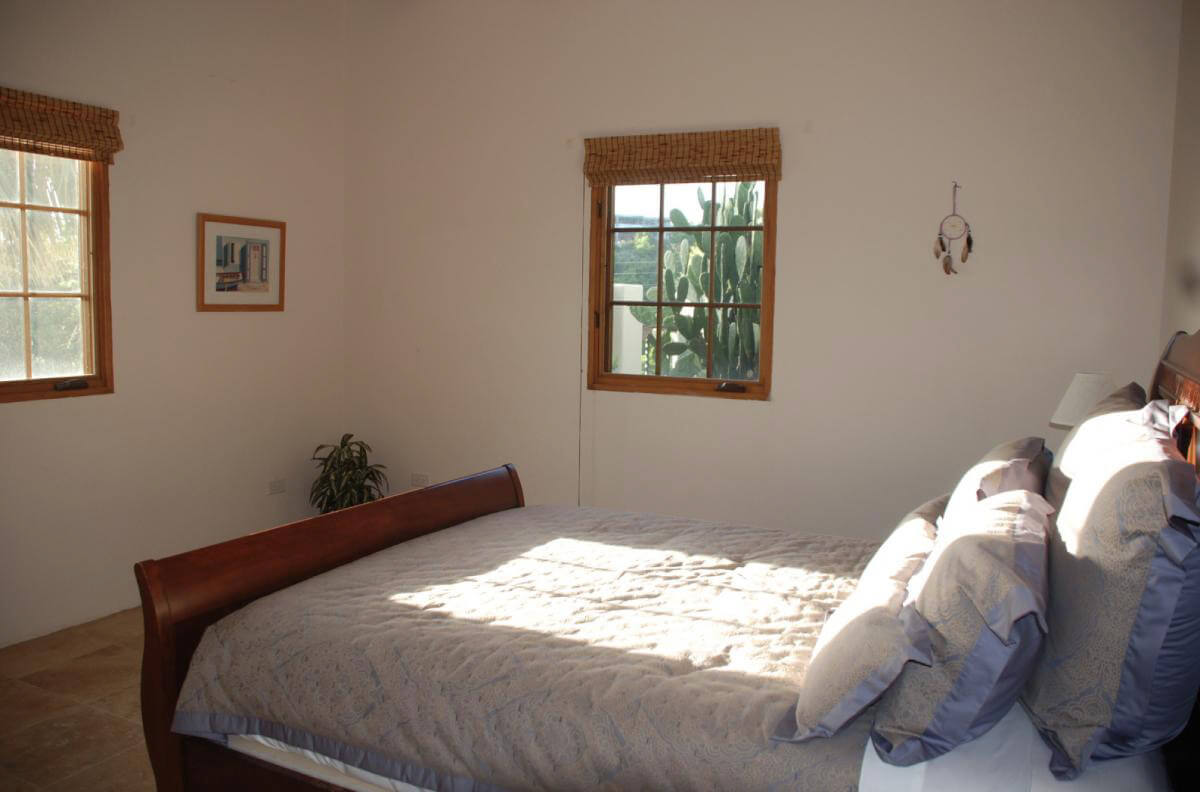 Dream Catcher’s 1.4 acres are fenced in, with easy road and beach access. The villa’s pool deck has unobstructed views of the Caribbean Sea and constant sunshine. An infinity pool and Jacuzzi lie on the ocean-facing side of the deck, and loungers and umbrellas sit on the opposite side. Al fresco dining rests under the veranda, and a fenced garden landscaped with bougainvillea, cacti, and indigenous plants surrounds the home. There’s also a propane-powered generator with an automatic switch and a TV security system in case of emergencies. Guests can easily drive to Shoal Bay’s sugar white sands for swimming, spectacular sunsets, and to enjoy the beachside restaurants and bars.