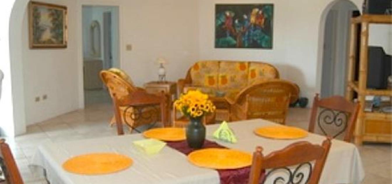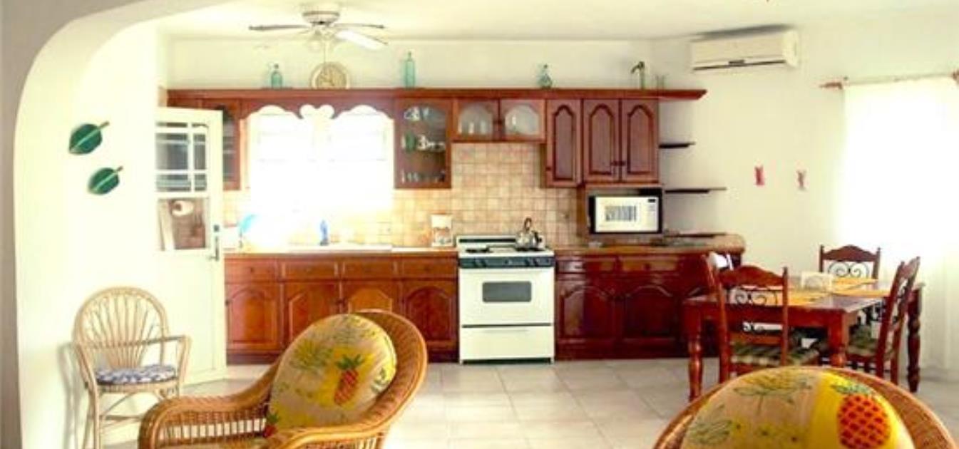 The dining area and bedrooms are all air conditioned. Throughout the villa the floors are tiled and the kitchen also has a ceiling fan. Terraces allow the cooling sea breezes to circulate around the villa and provide respite from the Caribbean sun during the day.