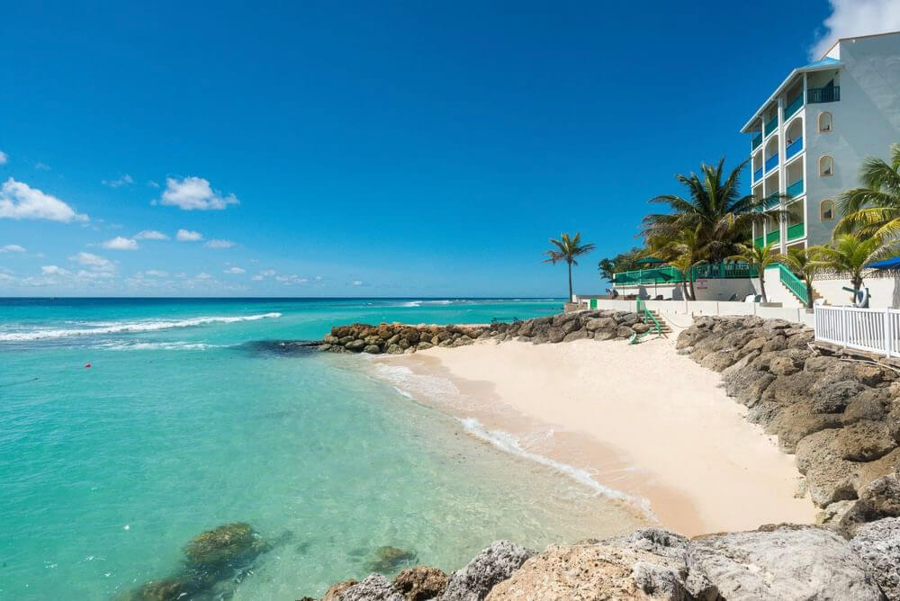This friendly, family run hotel, located at St. Lawrence Gap offers spacious accommodation close to the beach. The rooms and studios available vary in size and amenity but all share the hotels relaxed, Caribbean charm and decor. The hotel has art deco style windows and the colour theme throughout is a clean, turquoise and pale pastel palette creating a cool and elegant feel throughout.