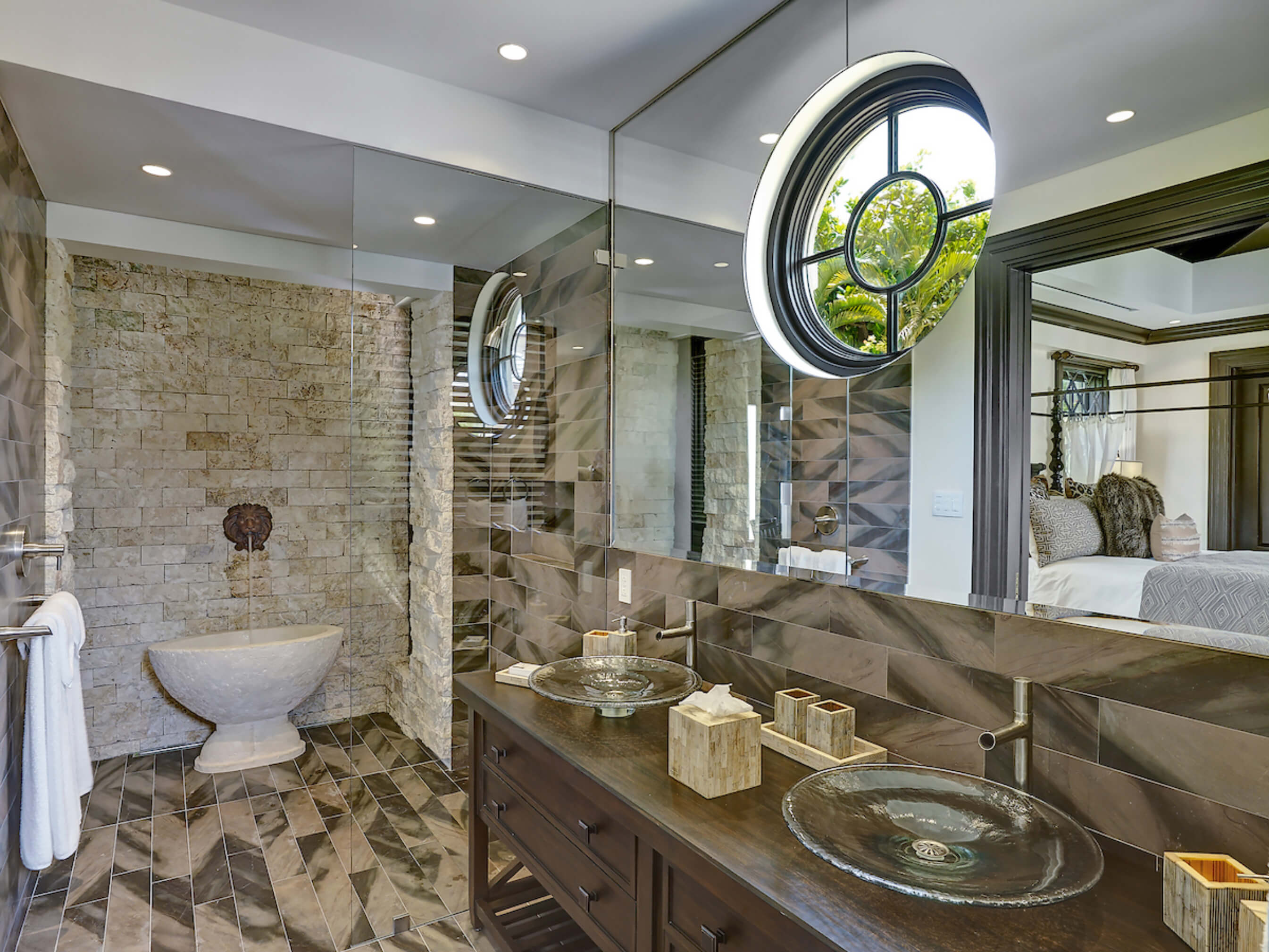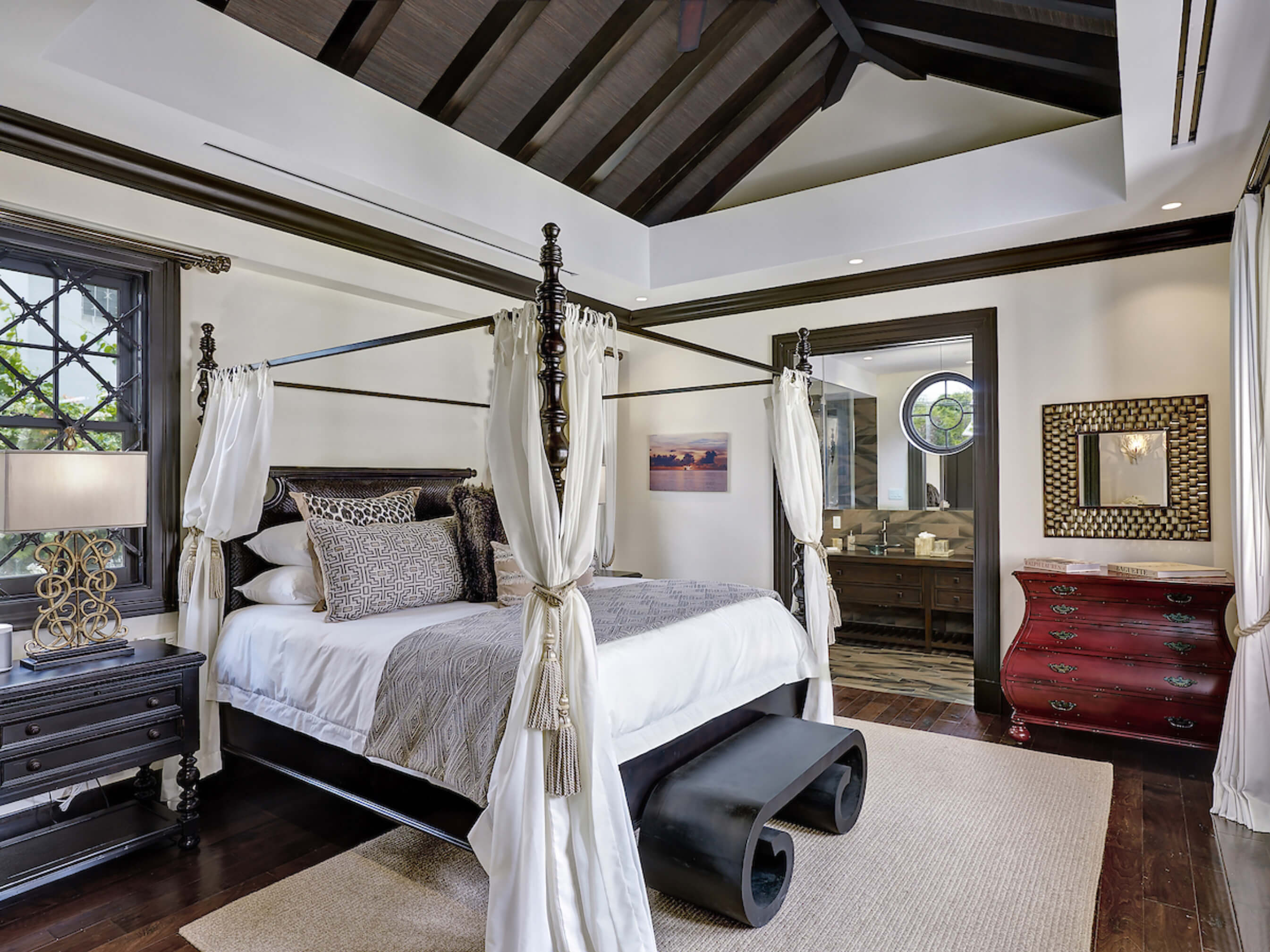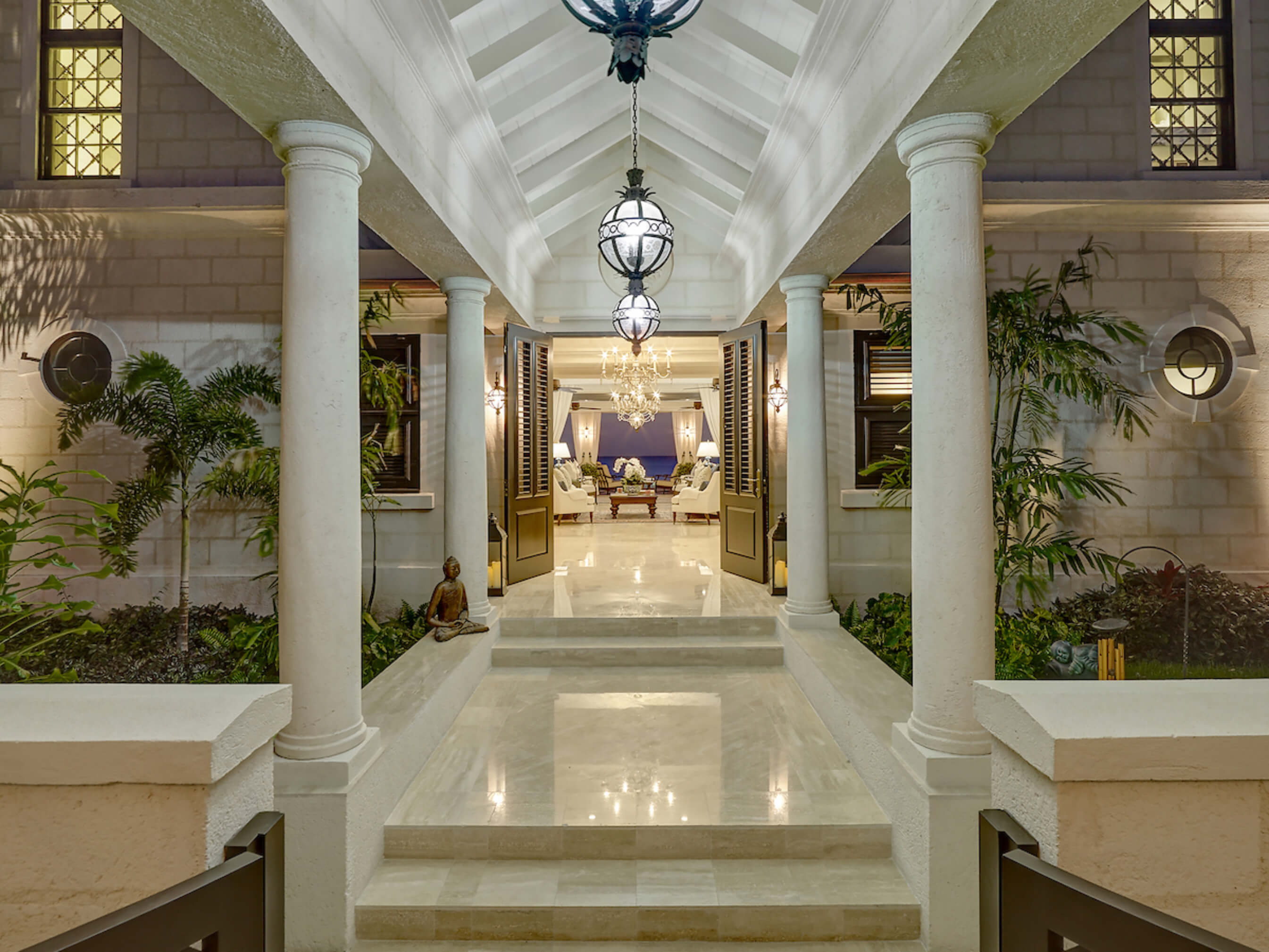 The one of a kind infinity edge lap pool has a built in bar table and sunken seats an ideal setting for unforgettable sundowners. The impeccable grounds include magnificent zen gardens, koi fish pond and private access to a secluded beach. The villa comes fully staffed with butler, chef, housekeeper and laundress and is supported by round the clock security, property management and concierge.