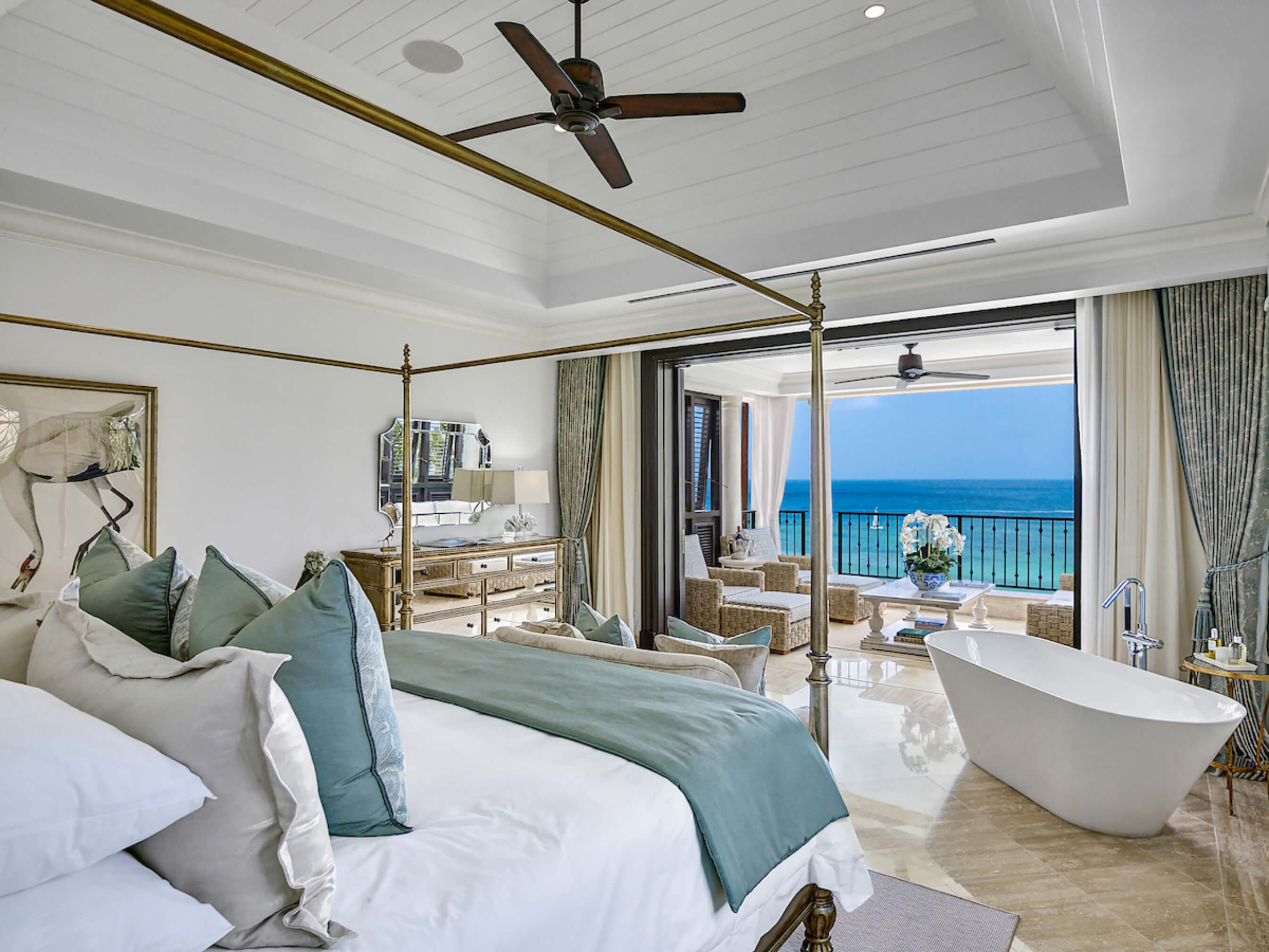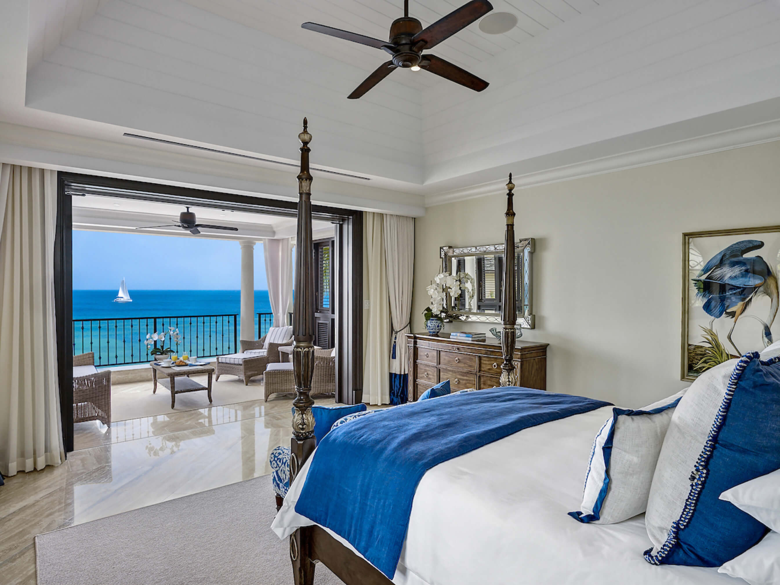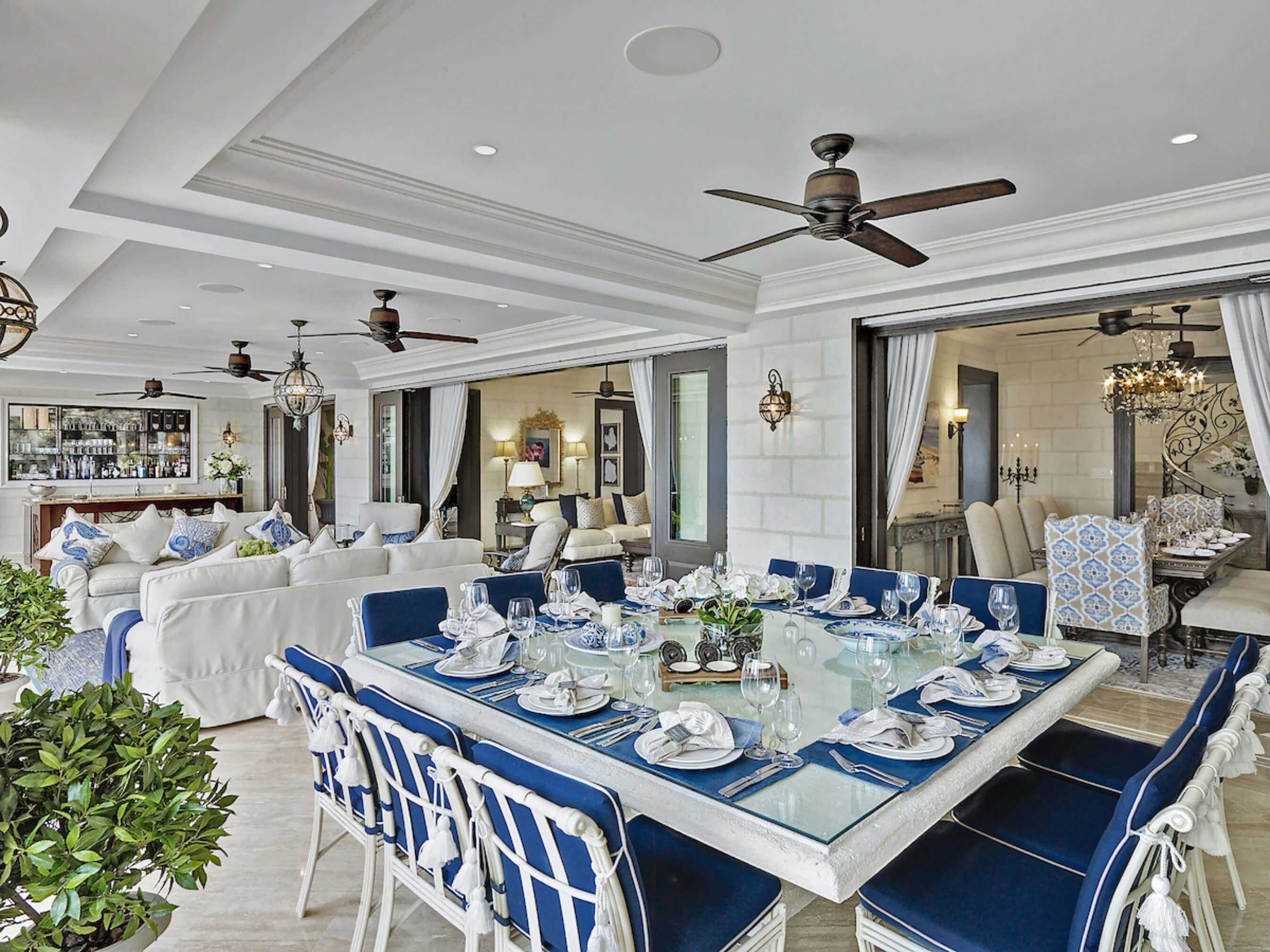 Enjoy outdoor living on the wide sea facing terrace with cocktail bar, ideal for entertaining, or the ocean front gazebo with informal dining.
