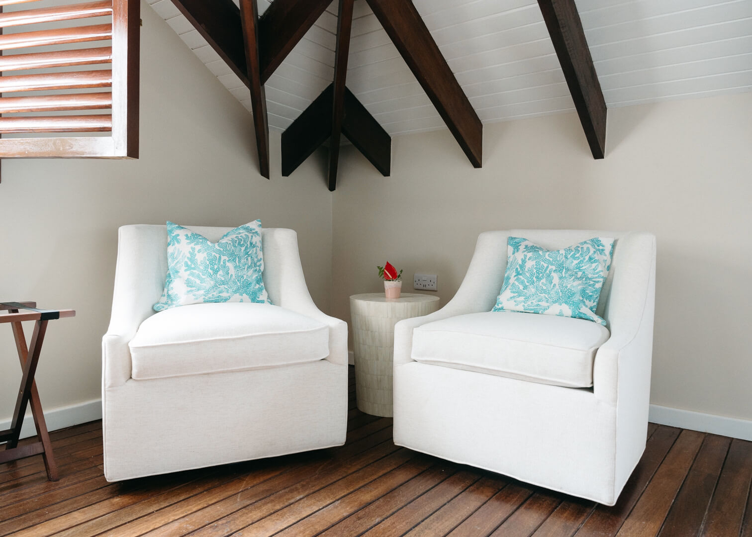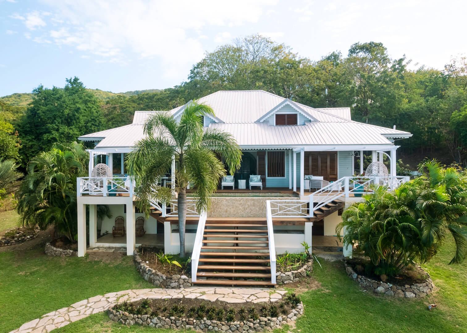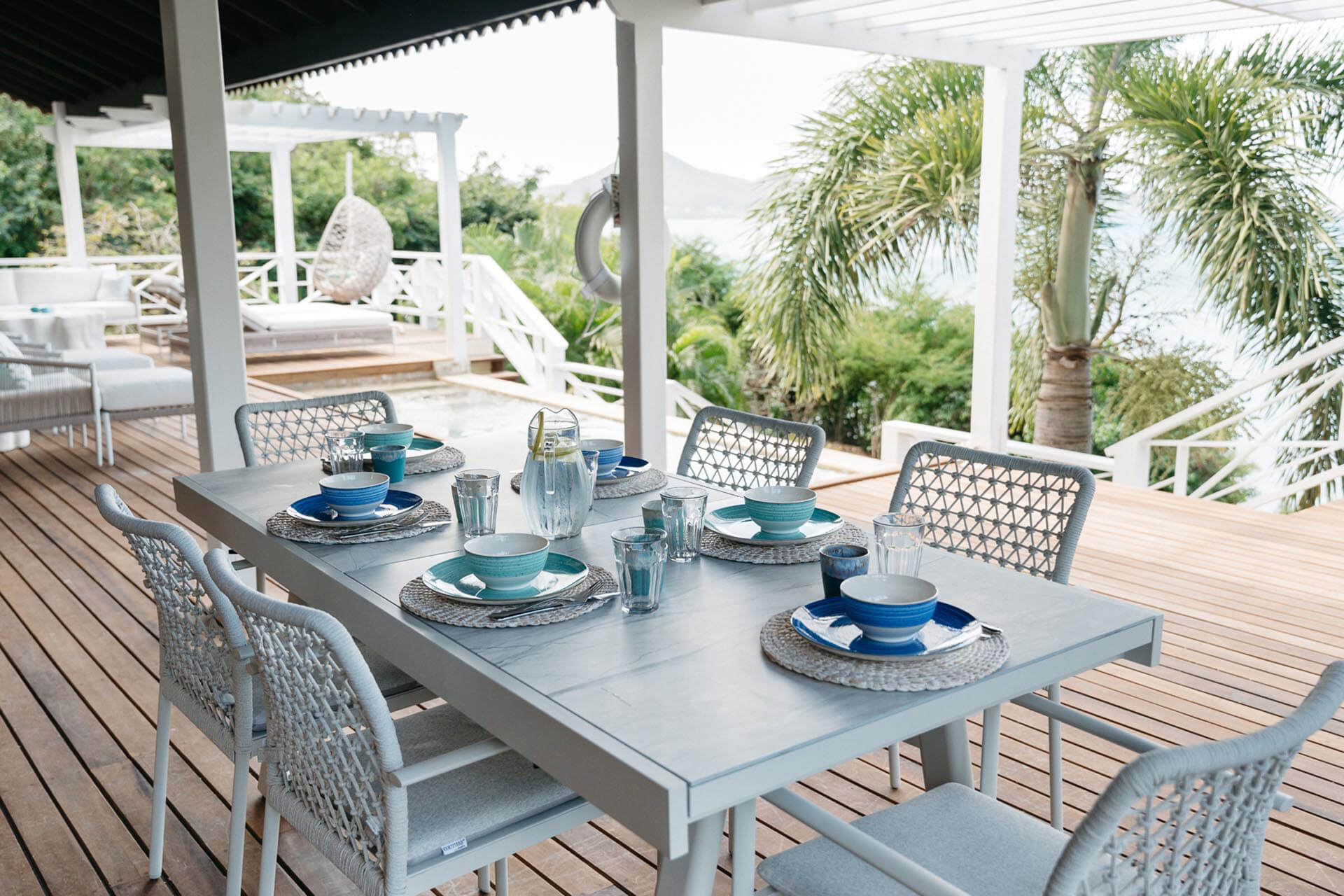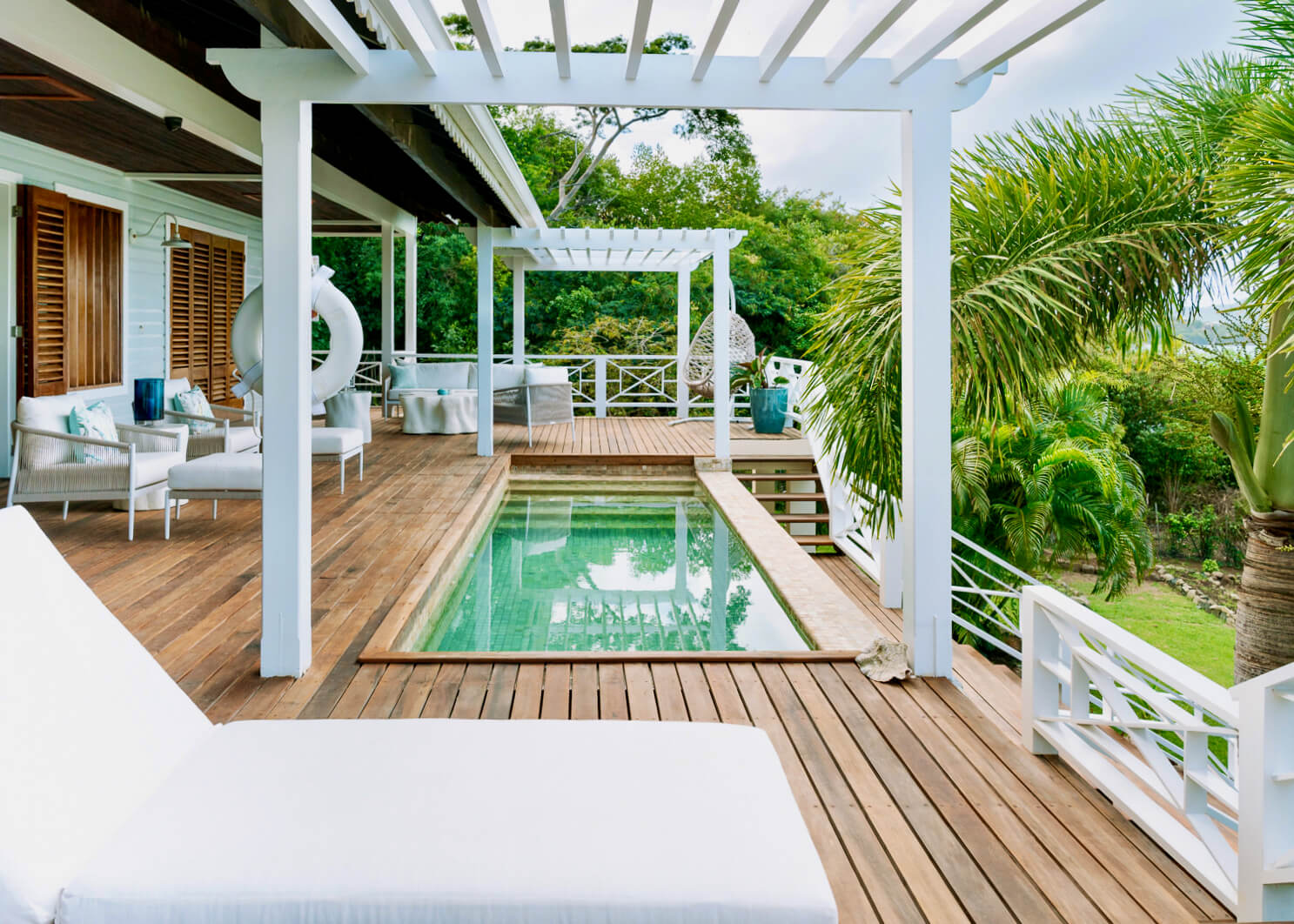 La Pagerie has it's own infinity pool, chic sun loungers and exterior dining furniture, all facing the Caribbean Sea, the West, and the setting sun...