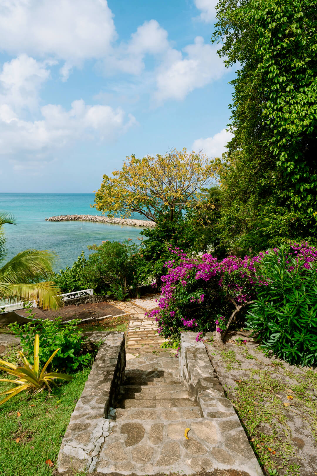 Amongst half an acre of fragrant gardens, above a small secluded coral and sandy beach within a protected National Park, La Pagerie has it all, privacy, unspoilt location and access to the ocean. A 4 wheel drive vehicle and boat are also available at an additional cost. This lovely, secluded property is available for bookings of no less than 7 nights throughout the year.
