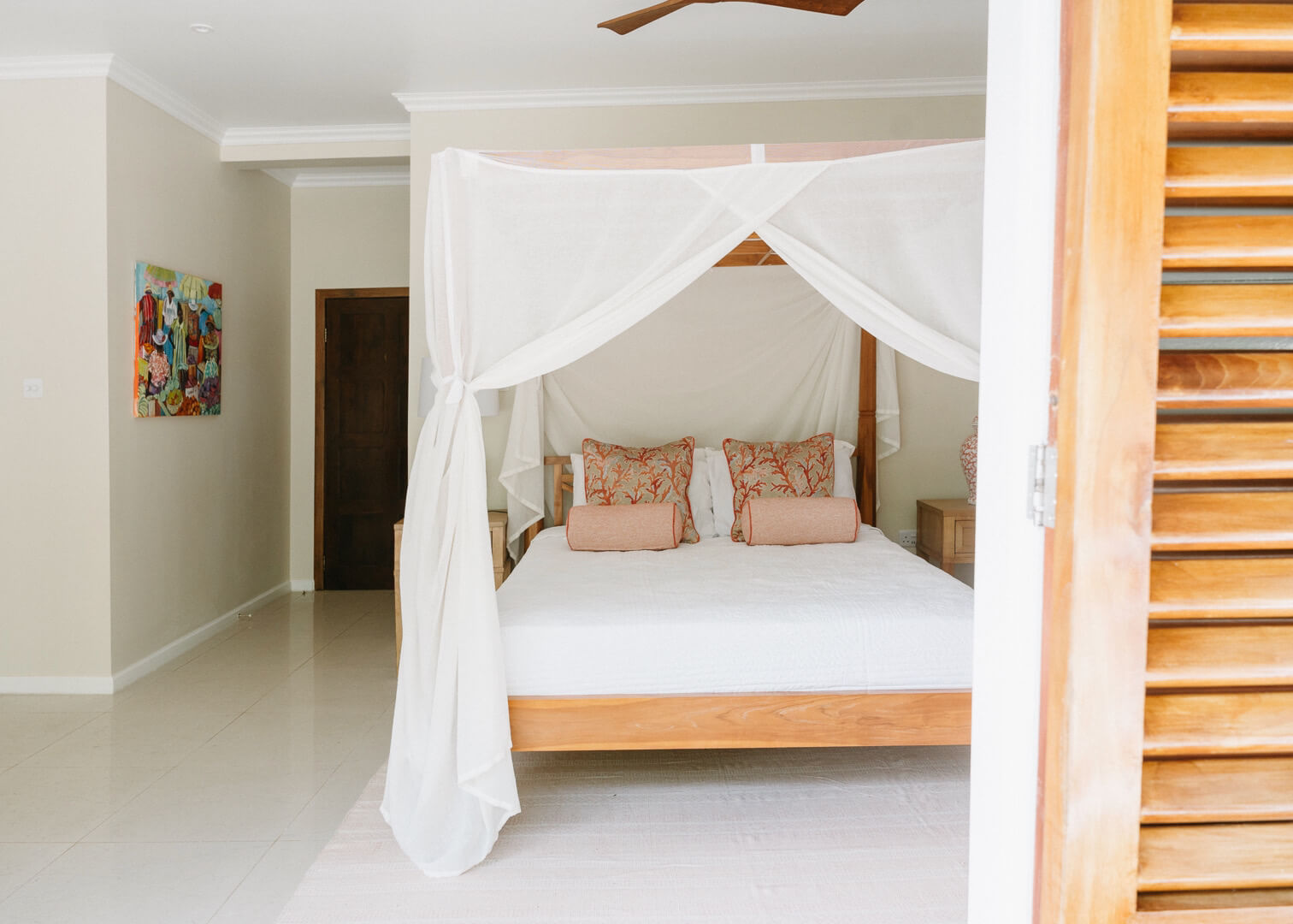 - Cinnamon Bedroom 1x Queen Sized Bed, private ensuite, verandah access and Ceiling Fan