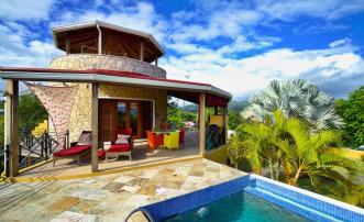 Calivigny - Grenada Island, GrenadaUnique Tower Shaped Villa, 3 bedrooms with AC, stunning 360 views, hillside, al fresco style layout, spiral staircase to rooftop lookout, private pool, charming & unusual, Children over 10yrs only