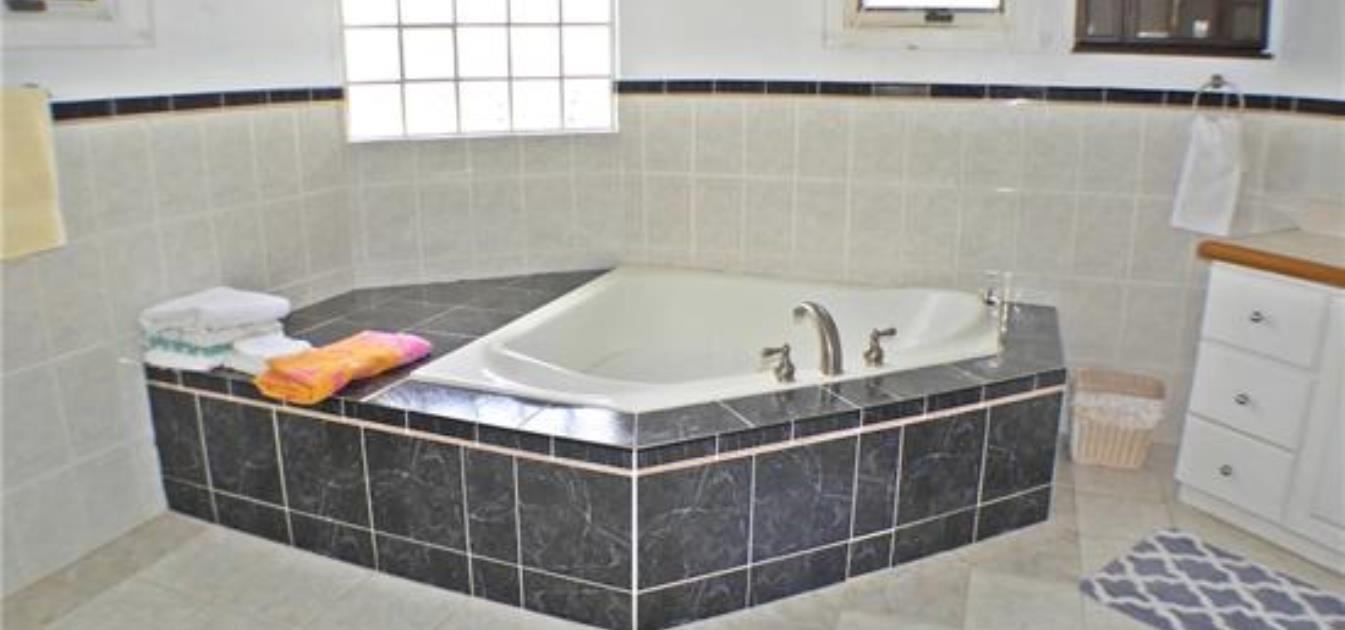 The master bedroom with private bath opens unto It's own deck with captivating views of the bay and beautiful Grenada. The second bedroom has a queen size bed with full private bath. The 3rd ( Queen ) and 4th bedrooms (twin) are formatted as a family suite and share a large full bathroom. An additional full bathroom is located in the den area.