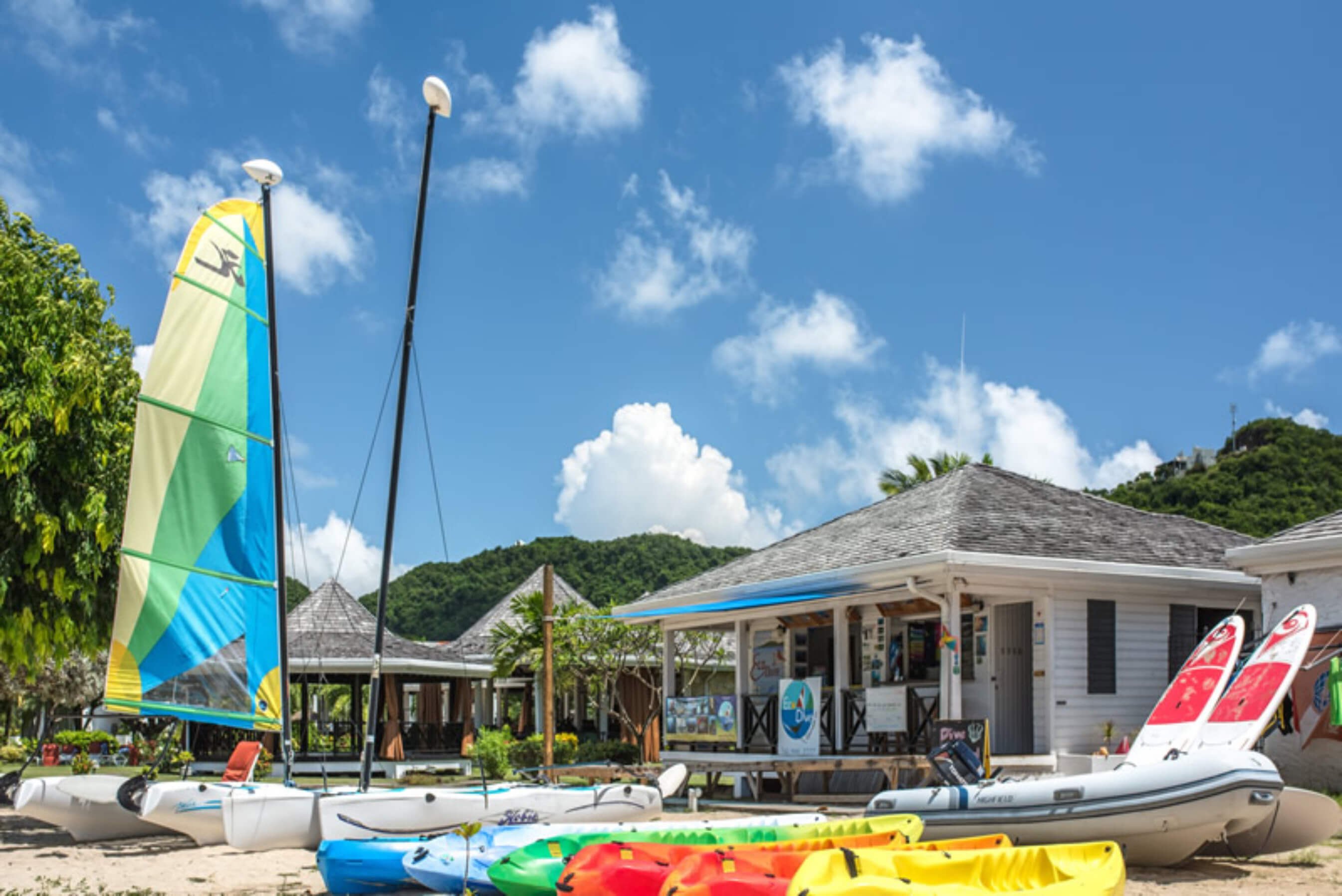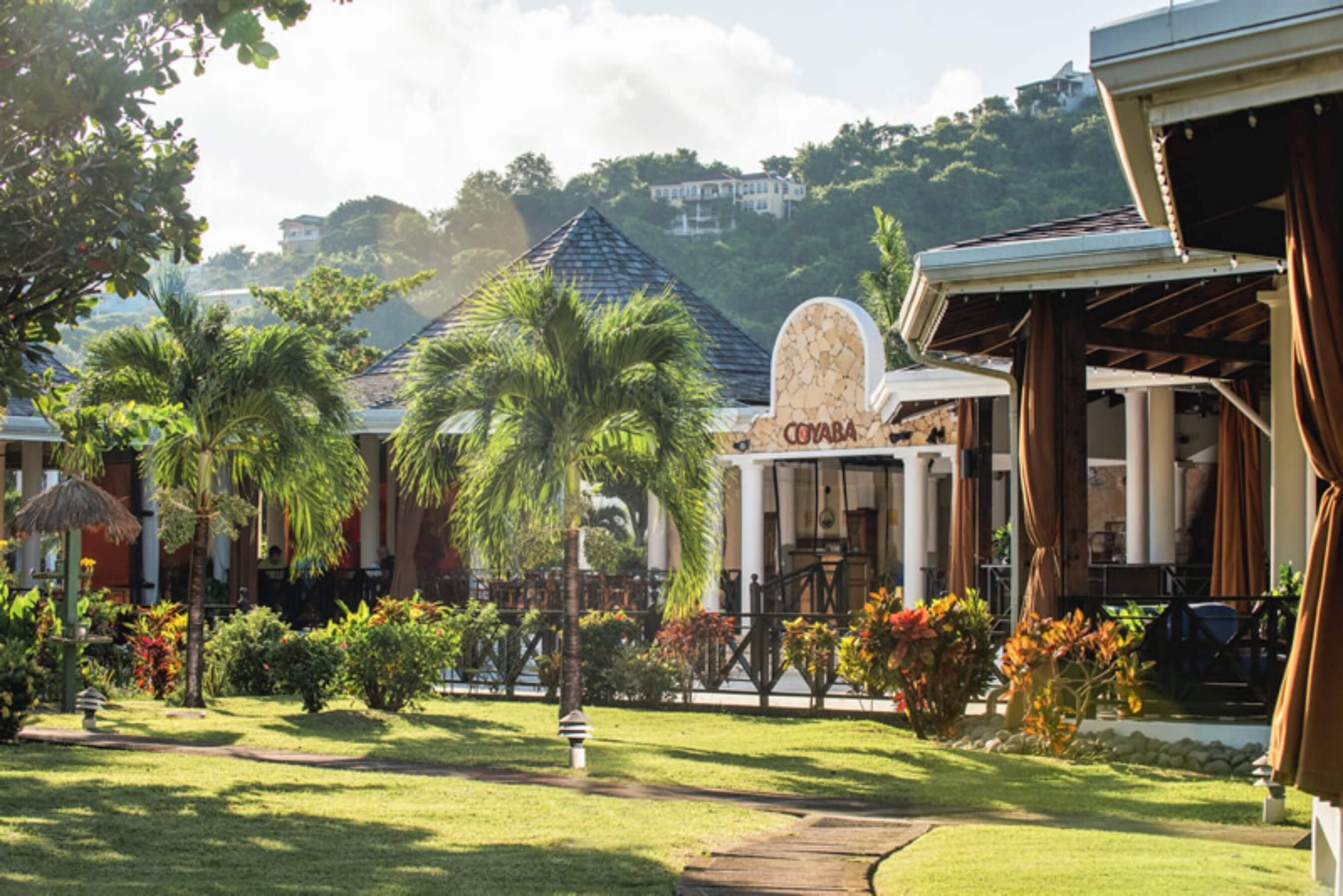 There are 2 eating establishments in the resort. Arawakabana is Coyabas signature oceanside restaurant, serving breakfast and dinner, featuring fresh lobster. The Carbet is a poolside grill specialising in burgers, fish, soups and salads.