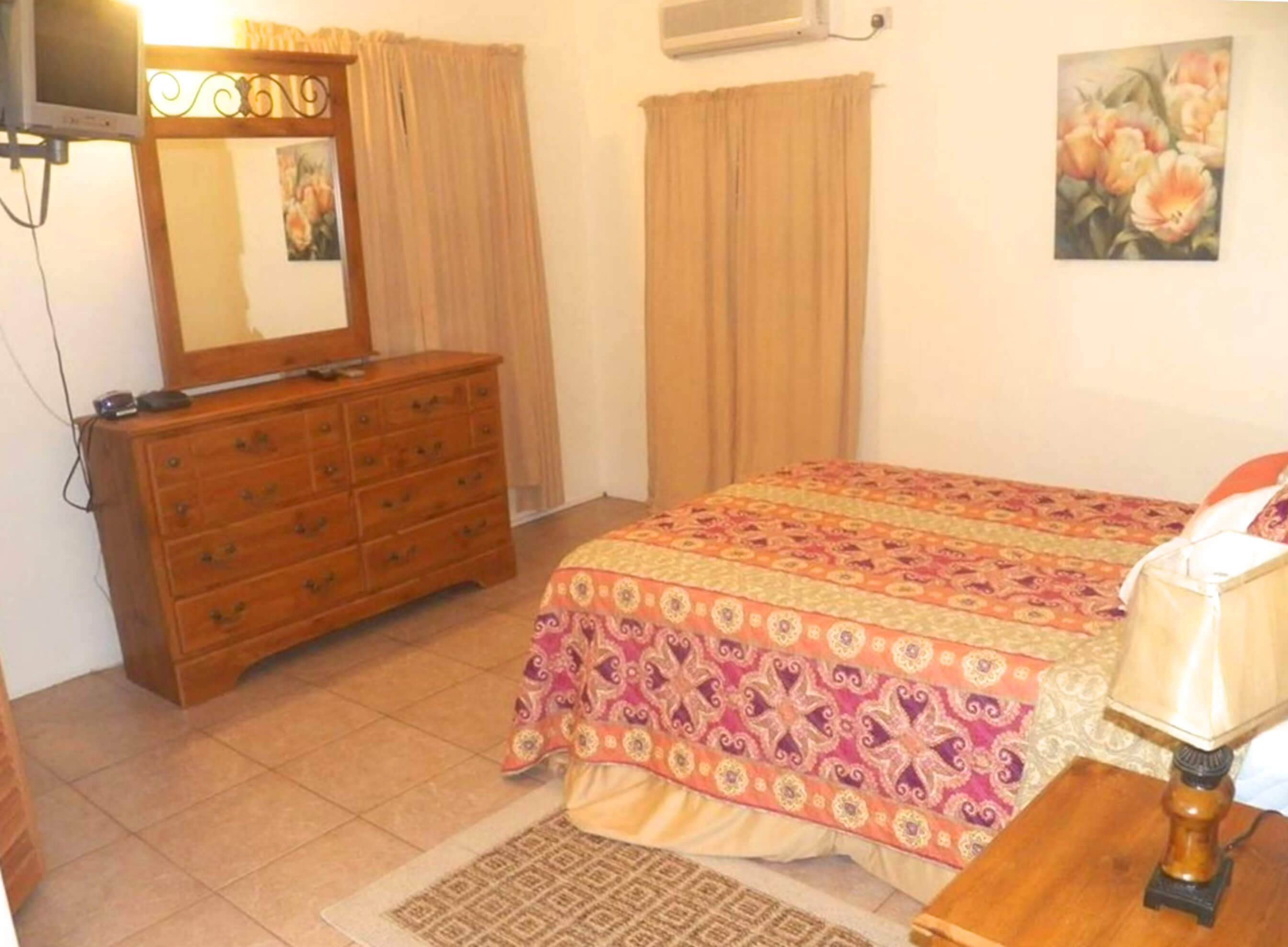 There are 2 lovely bedrooms each with AC, a double bed, mirrored chest of drawers, lamp, telephone, closet,bedside table, clock radio and 19' cable TV. The bedrooms share one bathroom.
